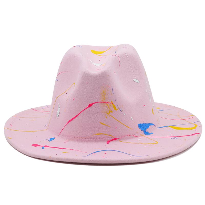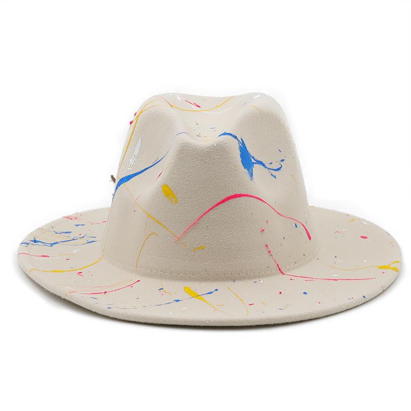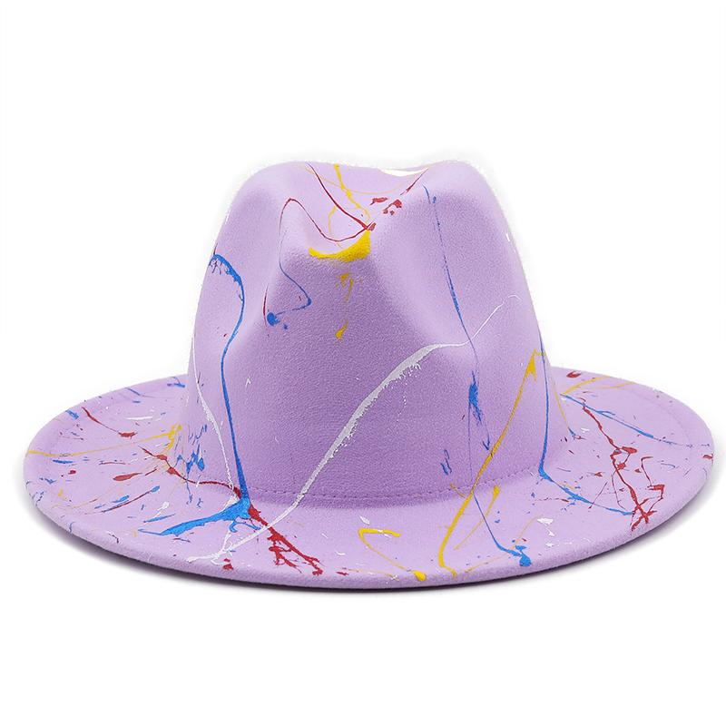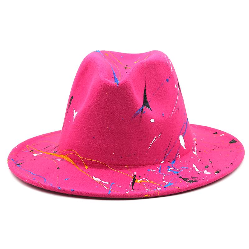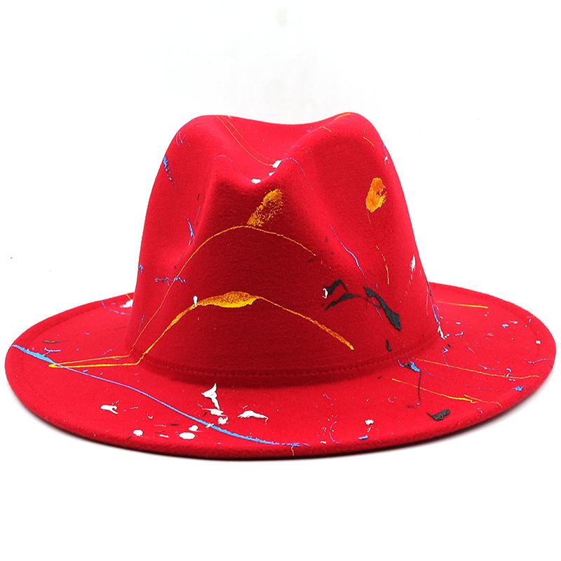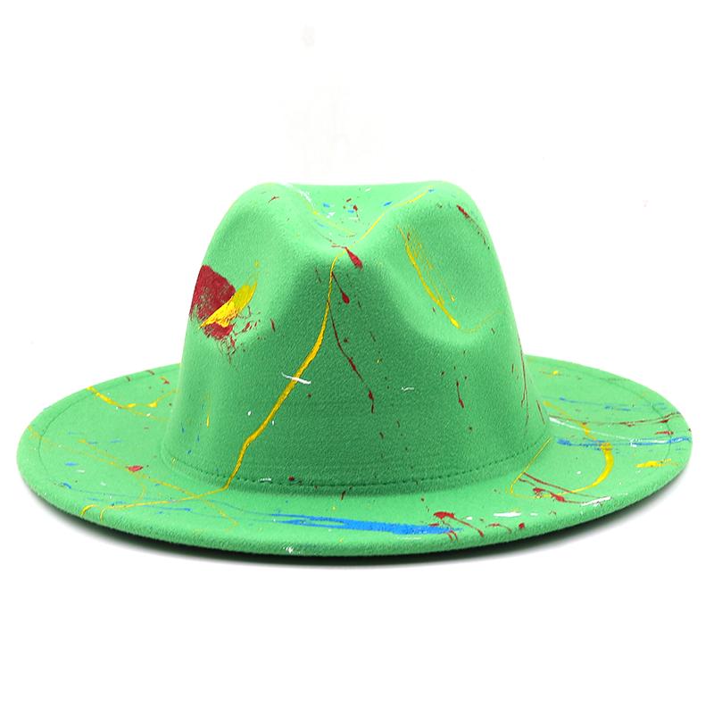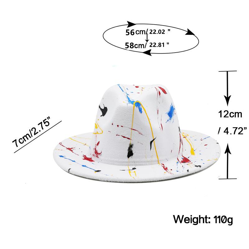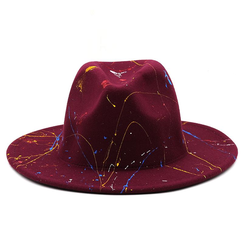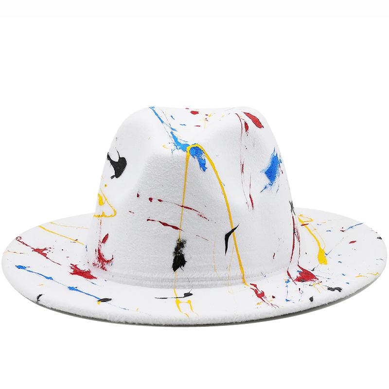 Шляпа из мягкой шерсти для женщин и мужчин, шляпа-федора с граффити для зимы и осени, элегантная женская гангстерская фетровая шляпа в стиле трилби, Хомбургская церковная джазовая шляпа, 55-58 см
