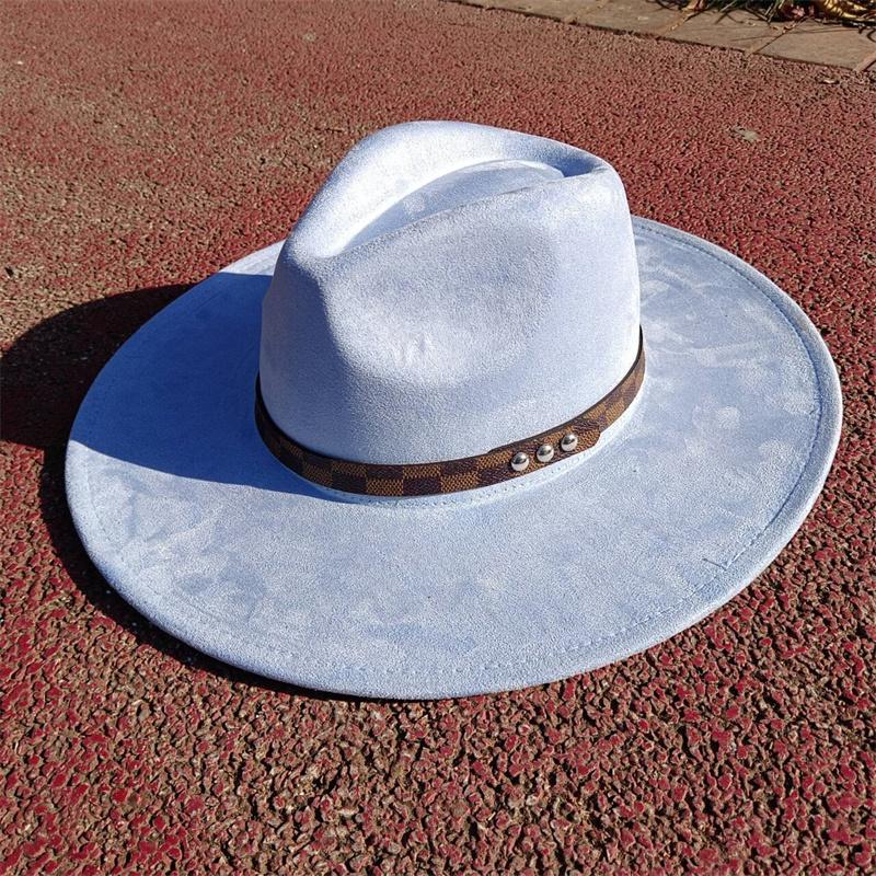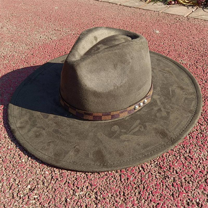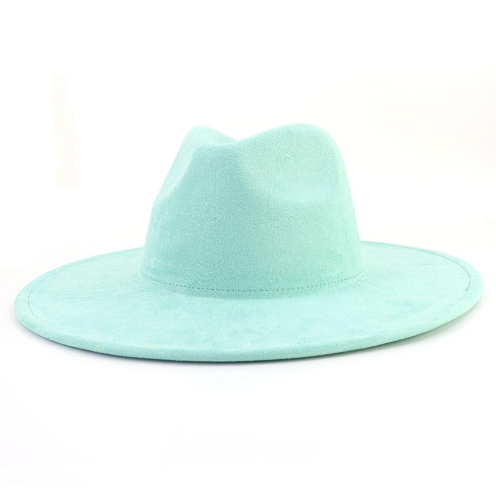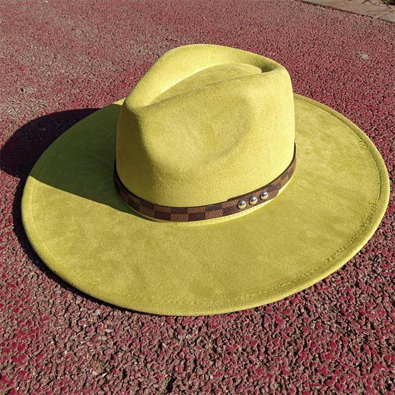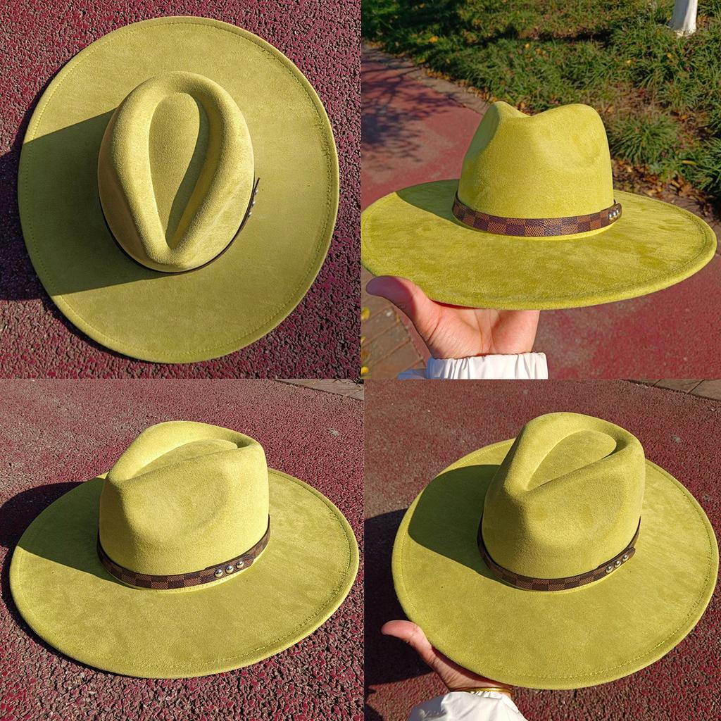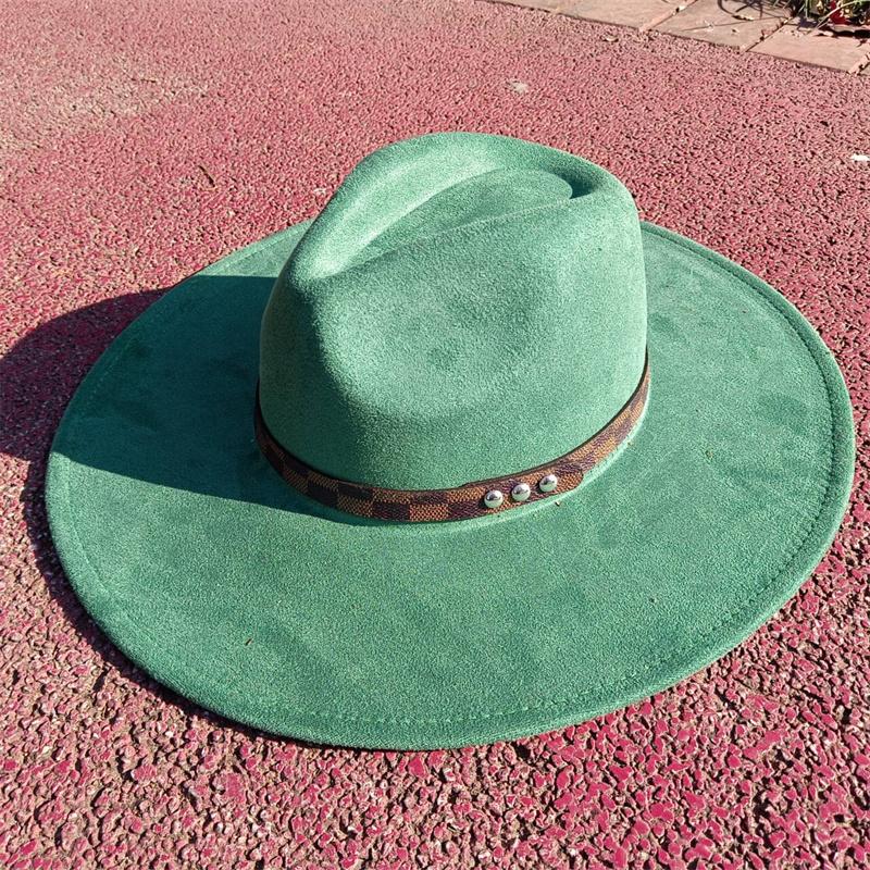 Зеленая замшевая шляпа-федора авокадо, клетчатый пояс, топ с каплей воды, шляпа с большими полями, мужская и женская шляпа, замшевая шляпа, сомбреро-мухер