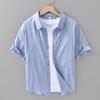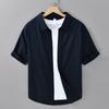 Летняя рубашка Мужская повседневная рубашка с коротким рукавом Однотонная рубашка с отложным воротником из хлопка и льна Мужские топы Простой стиль Мужская одежда Дышащая