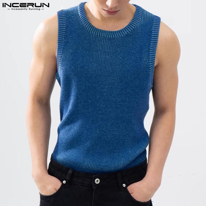 INCERUN Летние мужские вязаные жилеты без рукавов с круглым вырезом, спортивные майки