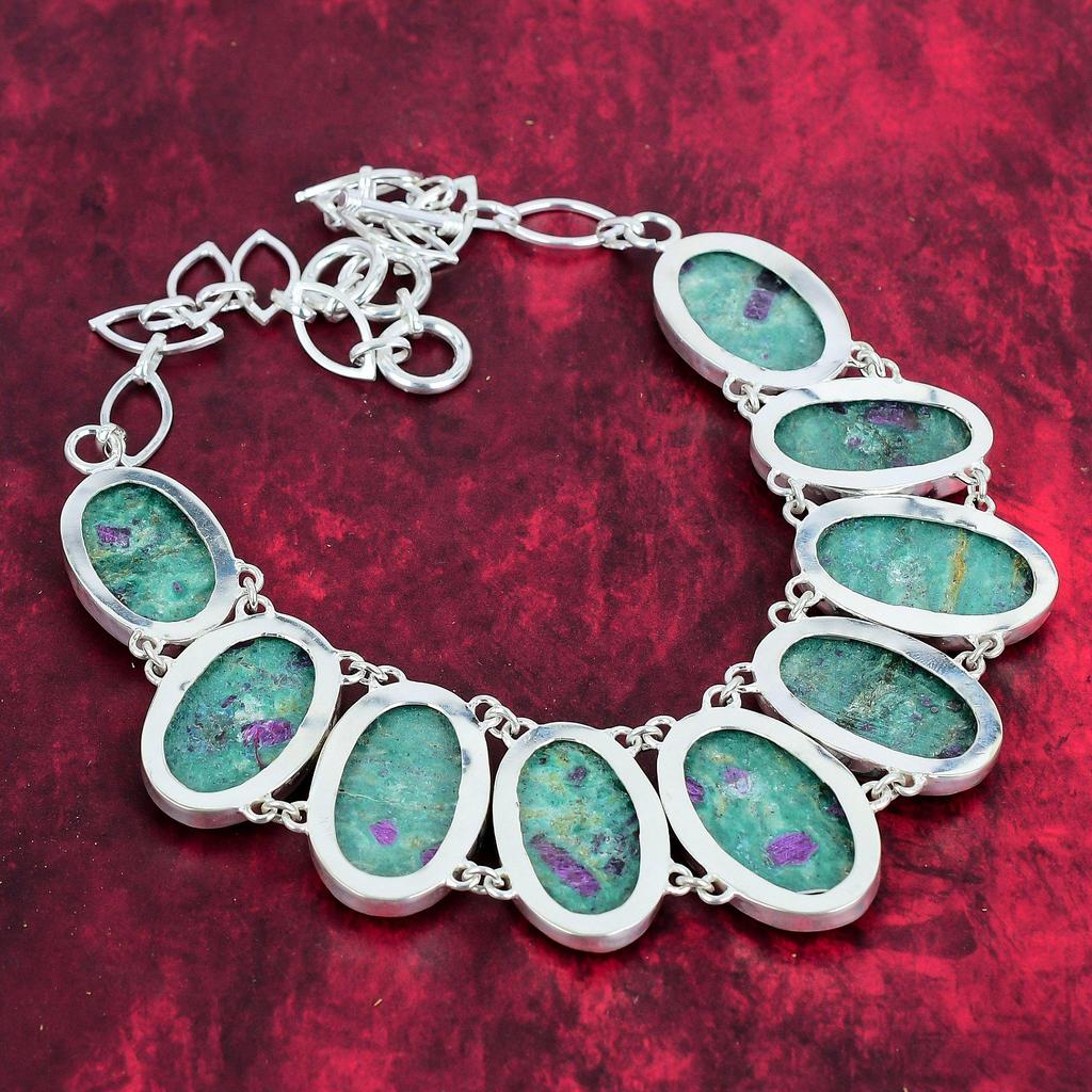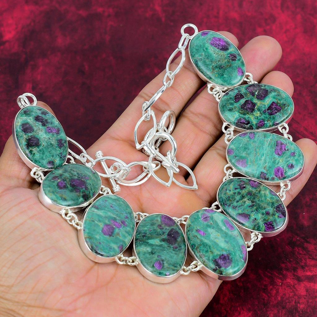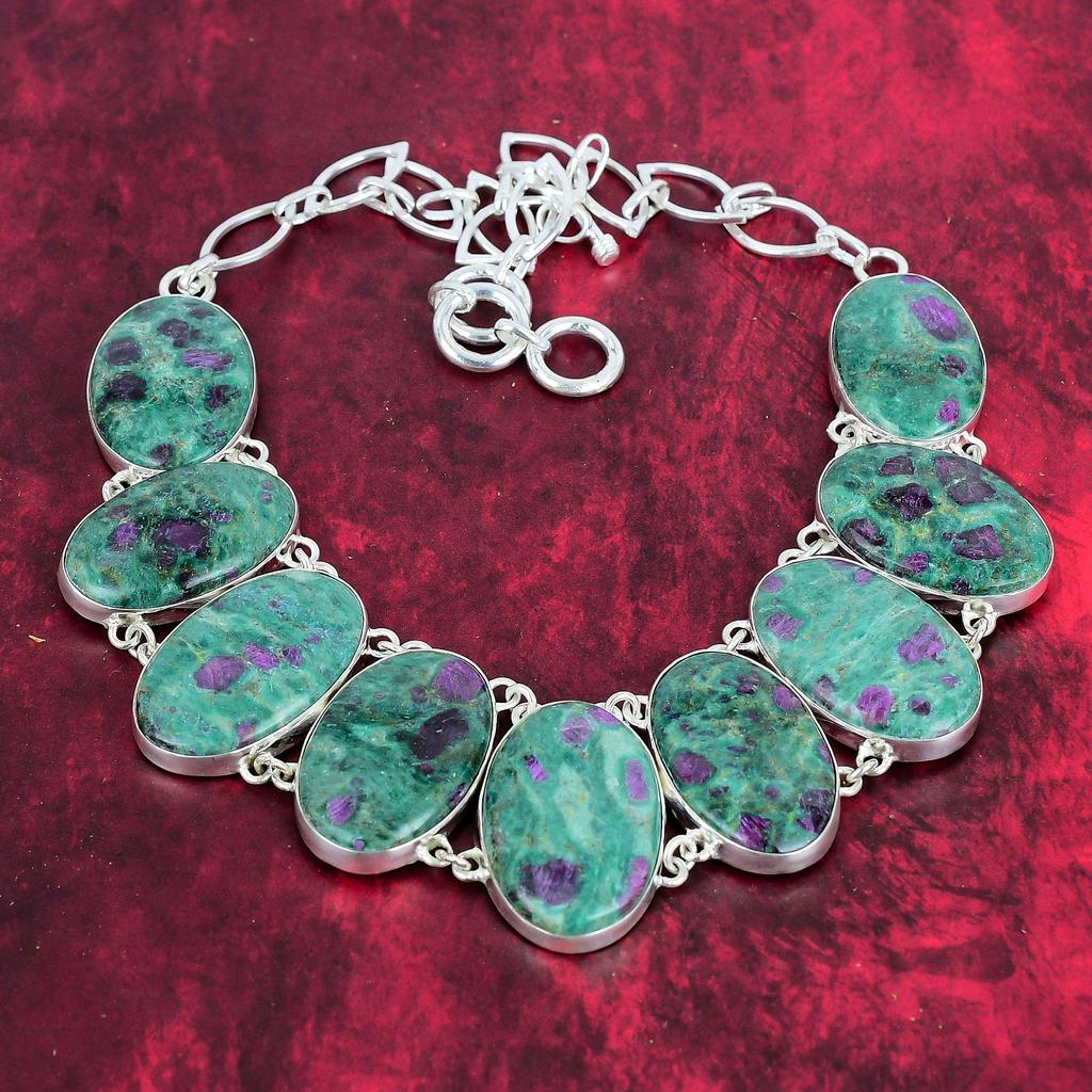 Ожерелье с рубином и фукситом, ожерелье из чистого серебра 925 пробы с натуральным драгоценным камнем, ювелирные изделия ручной работы, подарок на день рождения и годовщину для нее