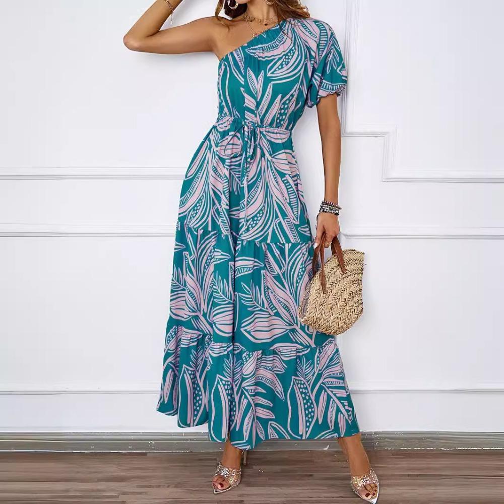 Новое летнее сексуальное длинное платье-юбка с наклонным вырезом и принтом в богемном стиле для отдыха на море