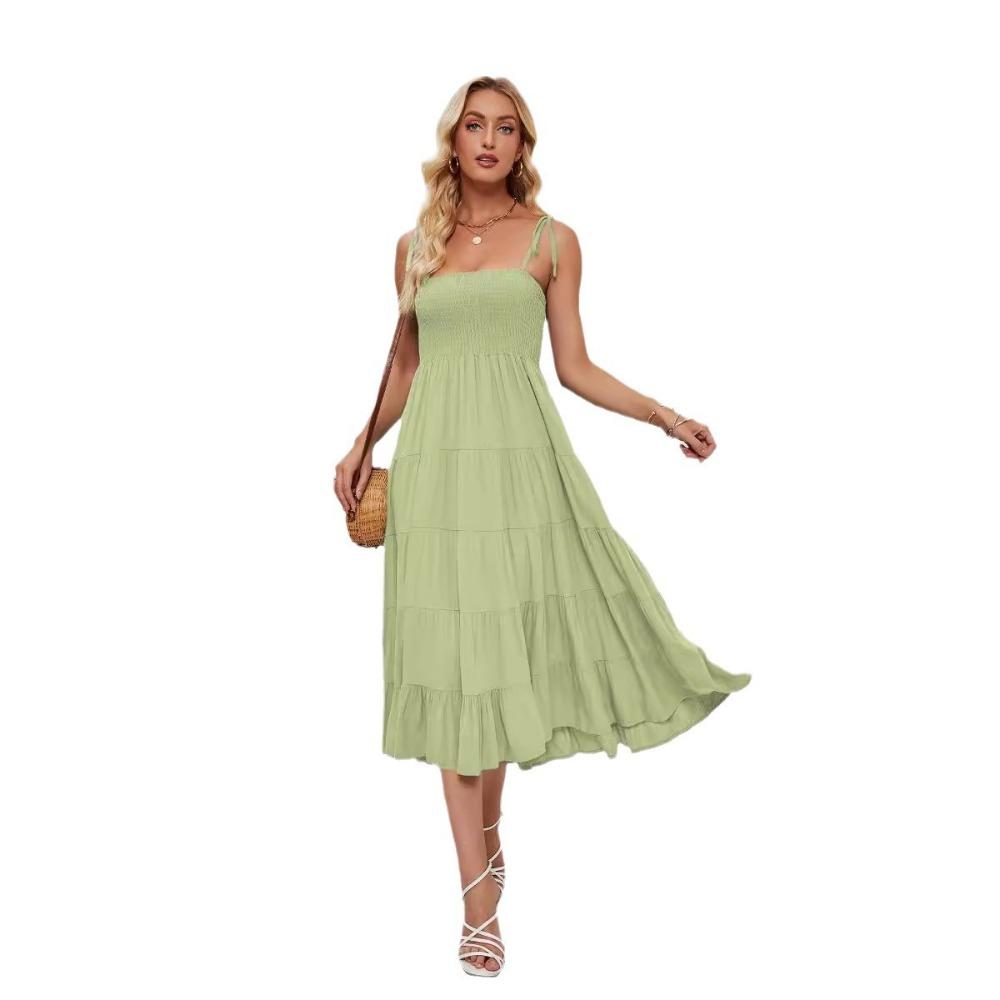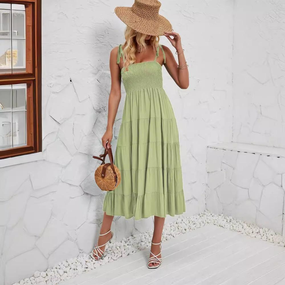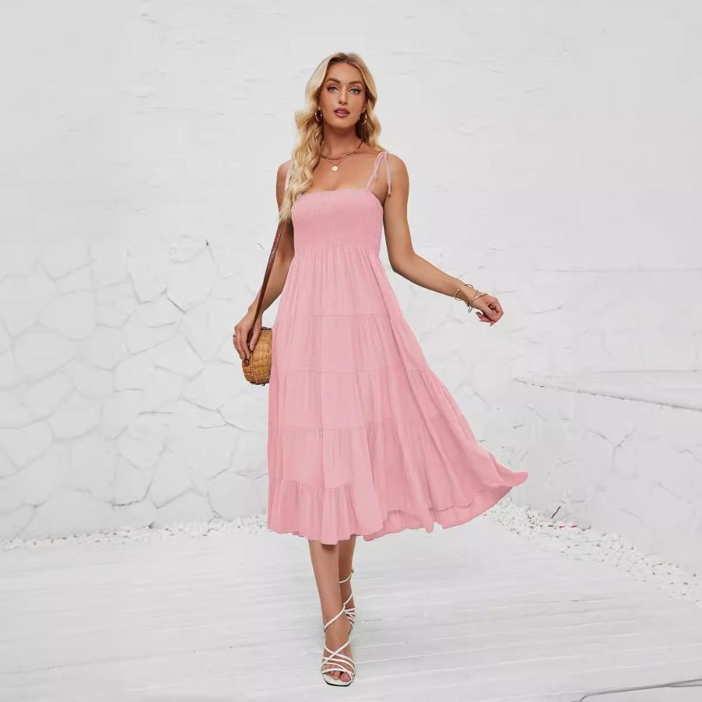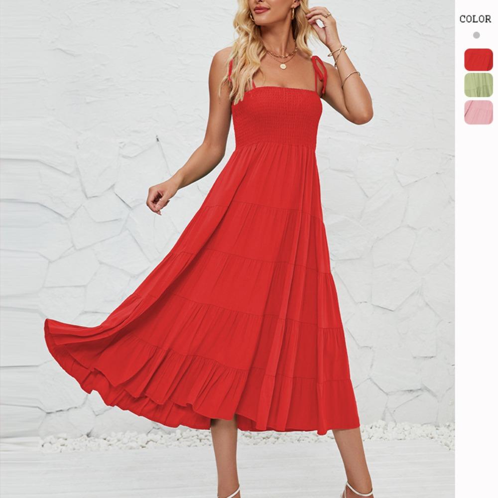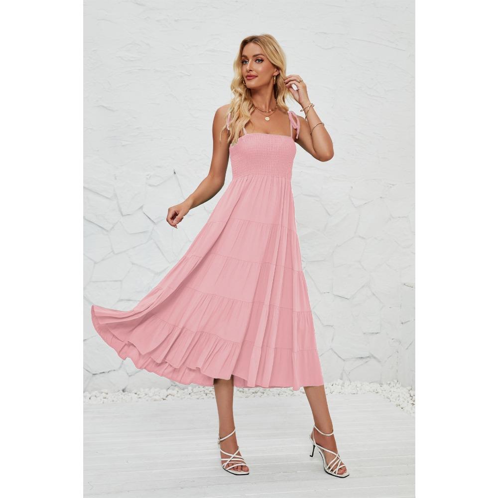 Летнее сексуальное богемное струящееся плиссированное многослойное платье макси с подтяжками