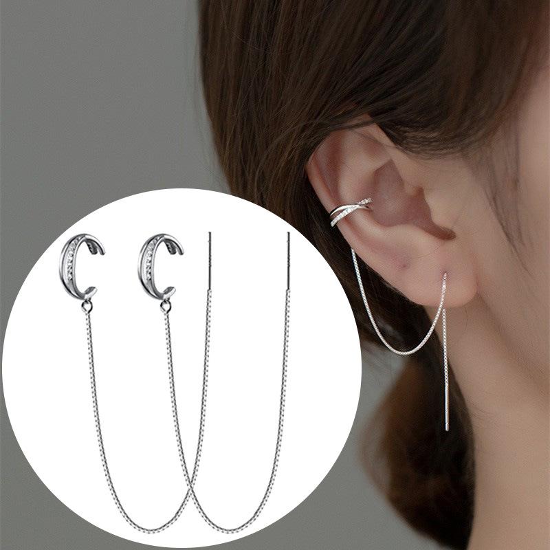 Винтажные висячие серьги с подвеской и длинной цепочкой, зажим для ушей для женщин, серебряные серьги, ювелирные изделия