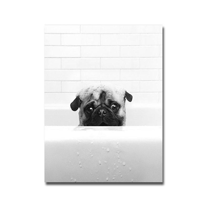 Милый постер с домашним животным в ванне, черно-белый минималистичный постер с собакой, художественный принт, скандинавская кошка, холст, картина, современная настенная картина, домашний декор для ванной комнаты