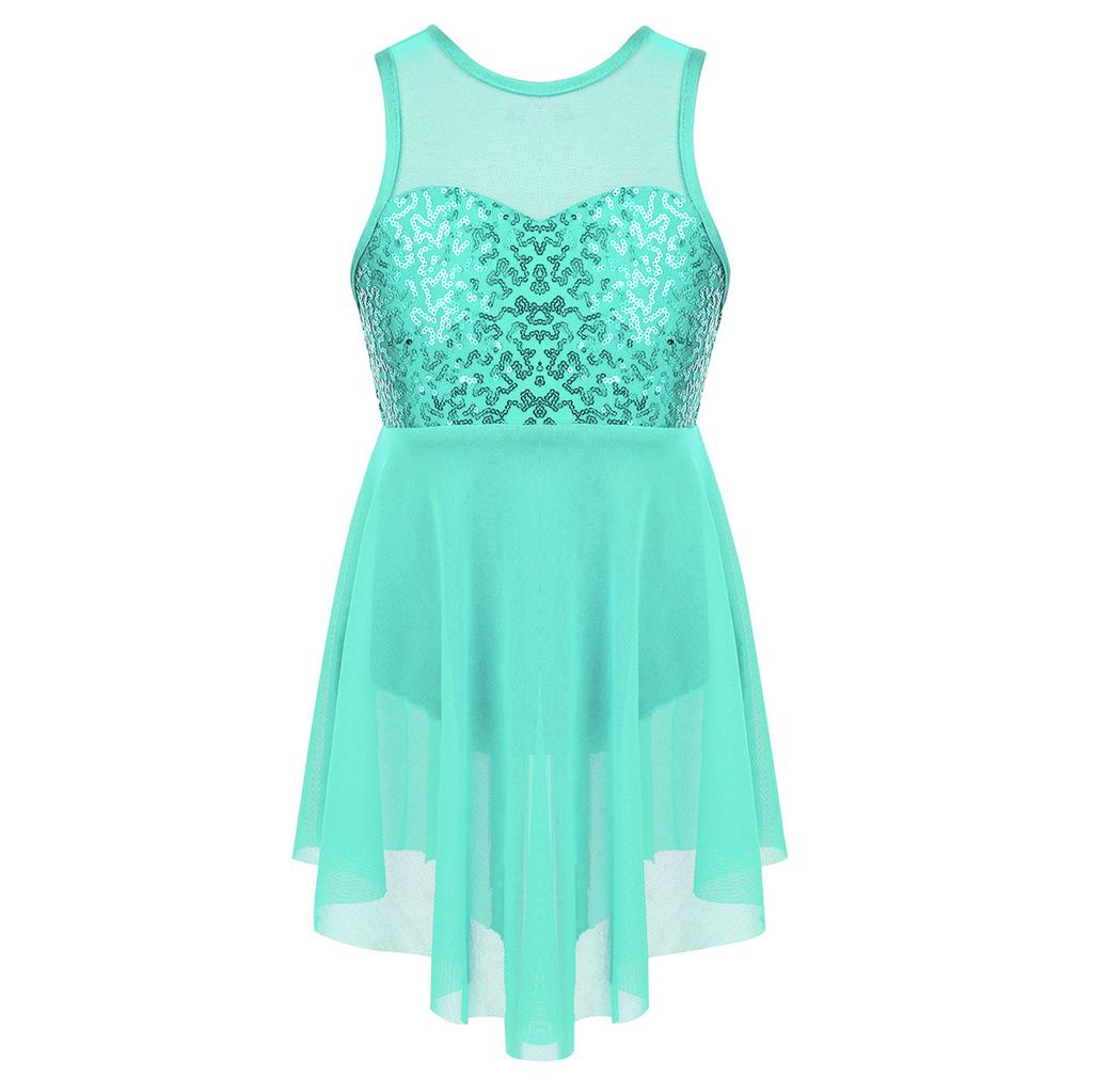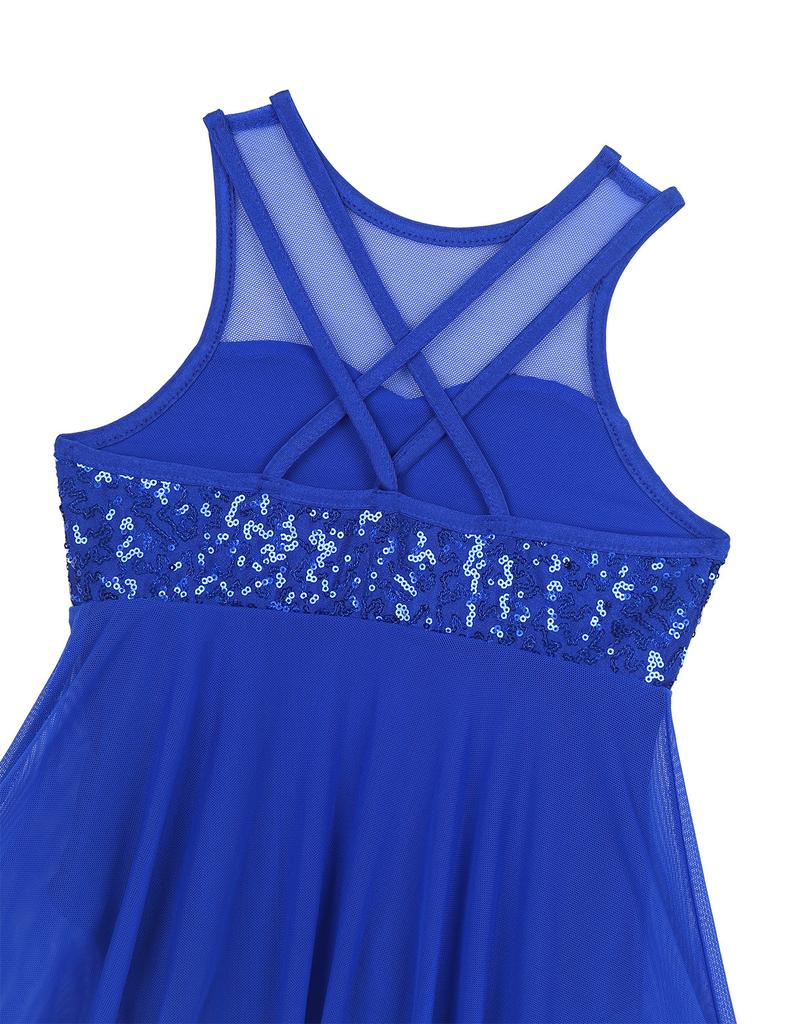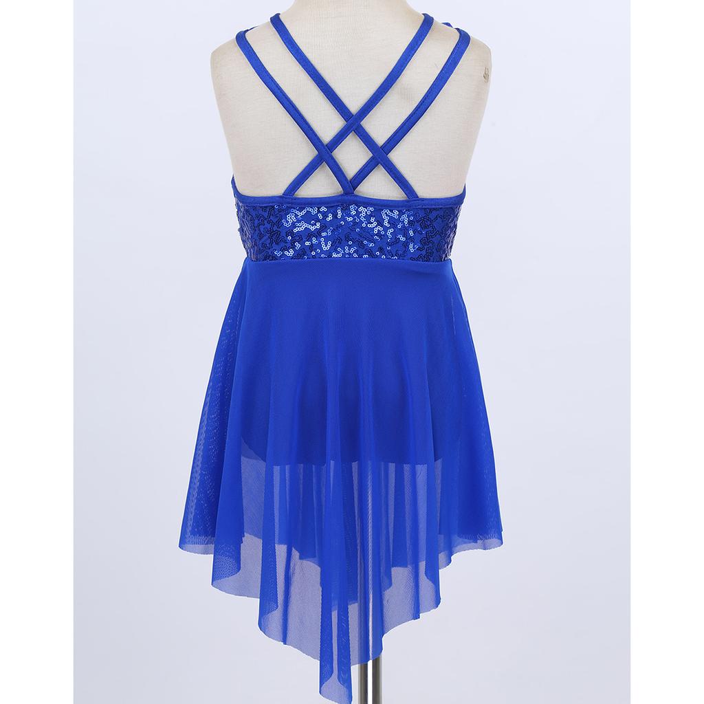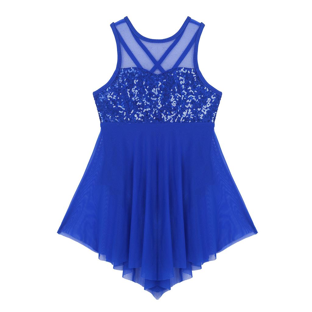 Детские современные лирические танцевальные костюмы для девочек, балетное трико без рукавов с блестками и крест-накрест на спине, нерегулярное платье-купальник