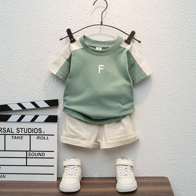 Новые летние комплекты одежды для маленьких мальчиков, модные хлопковые футболки с буквенным принтом + шорты для инструментов, комплект из 2 предметов, детская одежда для спортивного костюма для младенцев