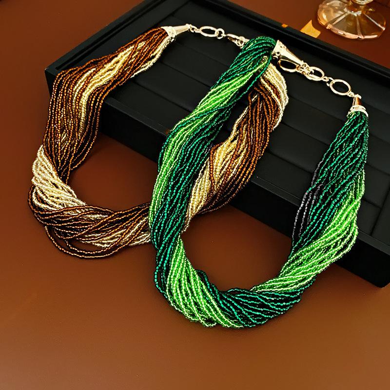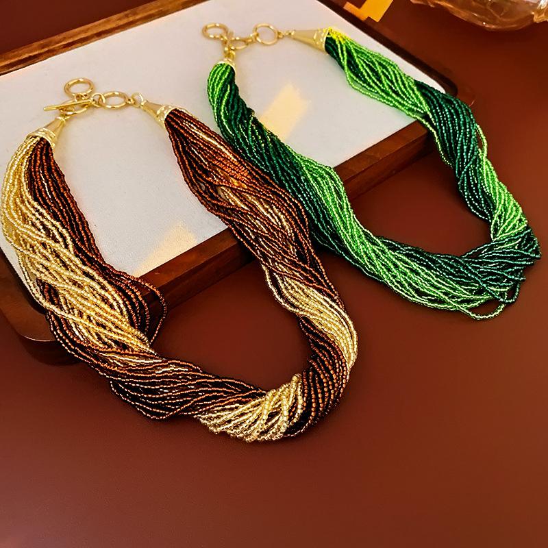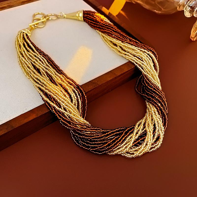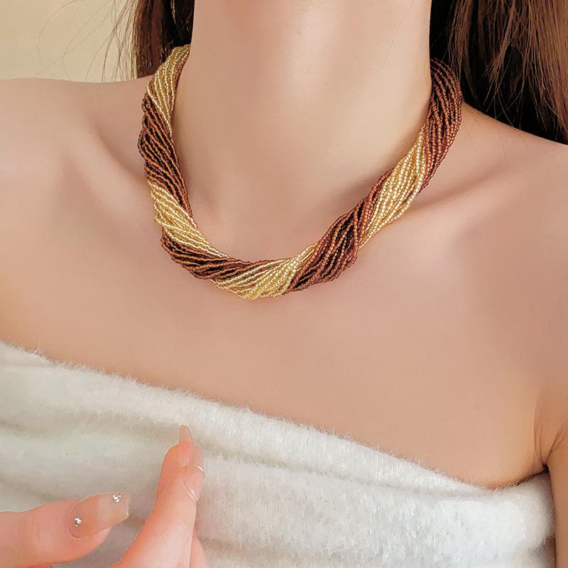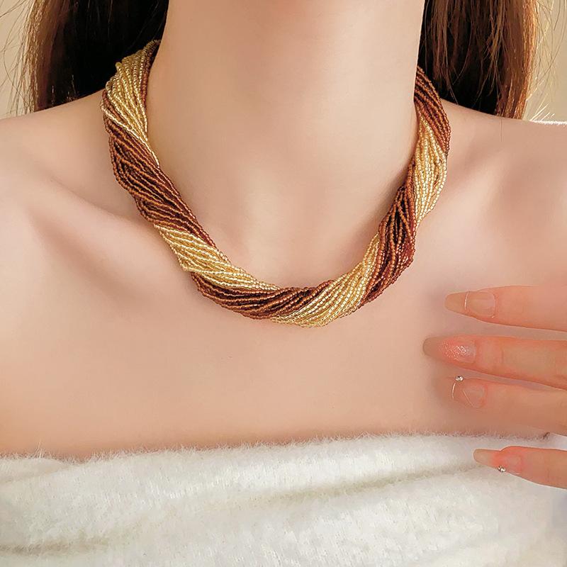 Французское винтажное многослойное ожерелье из рисовых бусин в обертке. Модное и персонализированное ожерелье-цепочка с воротником. Роскошное и высококачественное украшение для ожерелья.