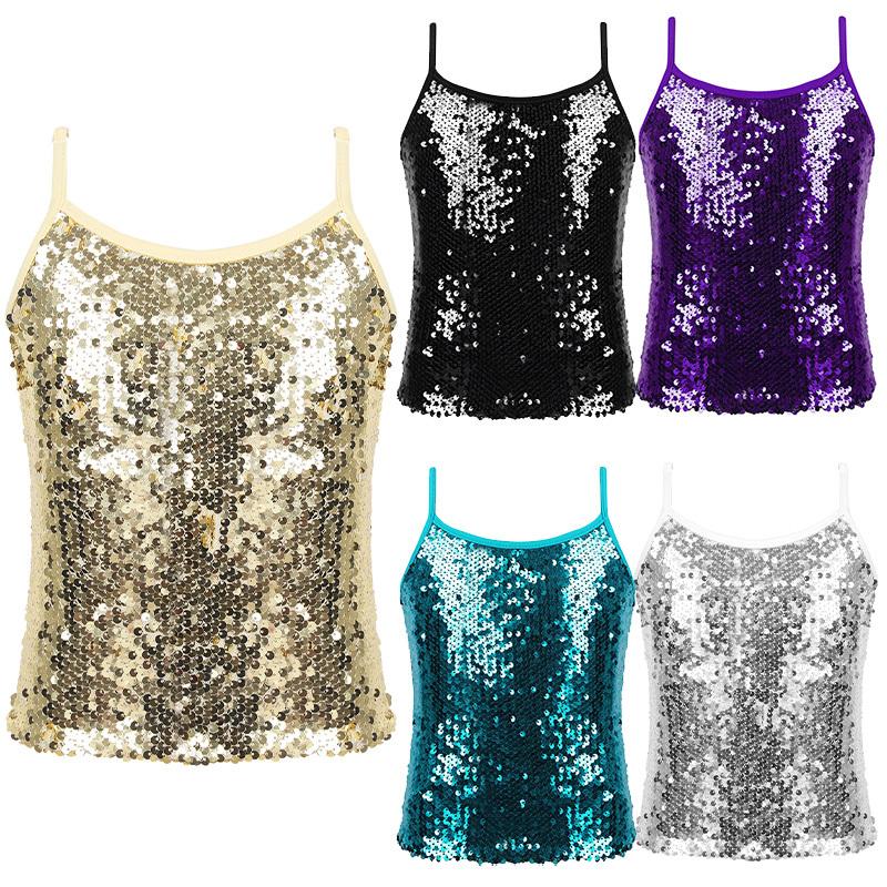 Детские регулируемые бретельки-спагетти для девочек, блестящая майка с блестками для сценических танцев — купить товар онлайн с бесплатной доставкой до всему миру!