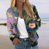 Куртки для женщин, легкие укороченные куртки с длинным рукавом на молнии, модная верхняя одежда с цветочным принтом, повседневные стеганые куртки с карманами