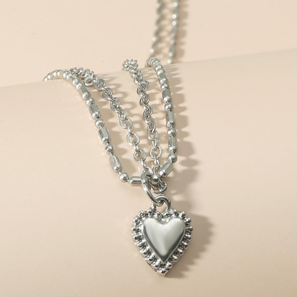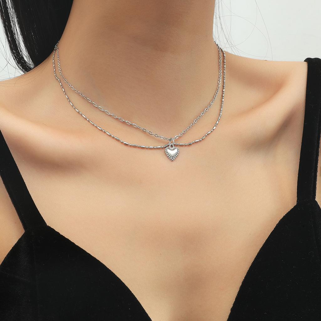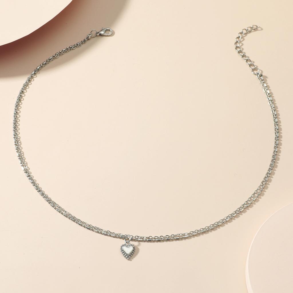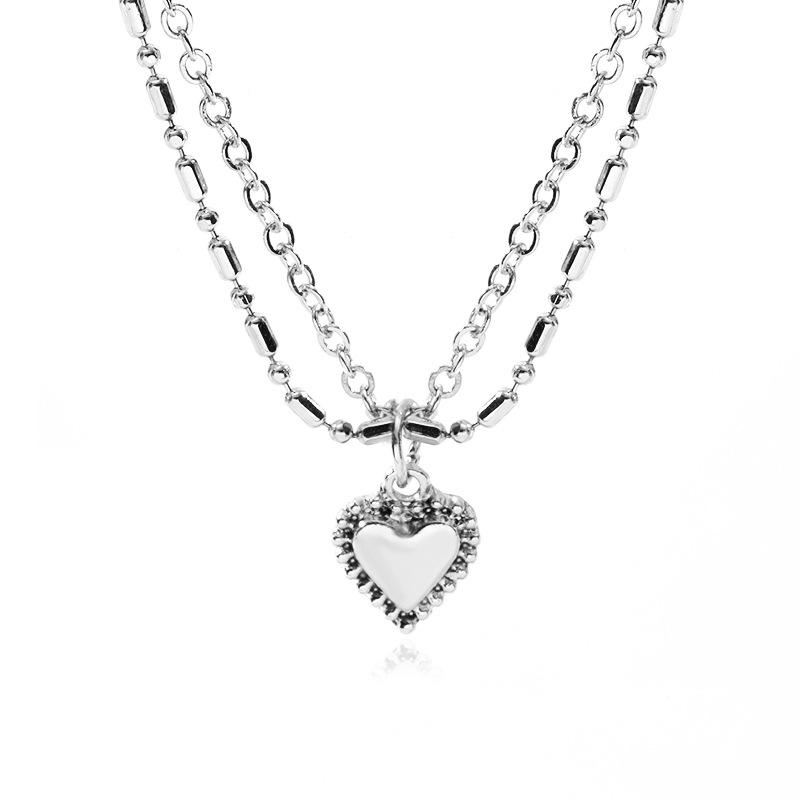 Простая двухслойная цепочка на ключицы, ожерелье с подвеской в форме сердца, модный тренд, цепочка из бисера, аксессуары, ювелирные изделия для девочек, модные аксессуары