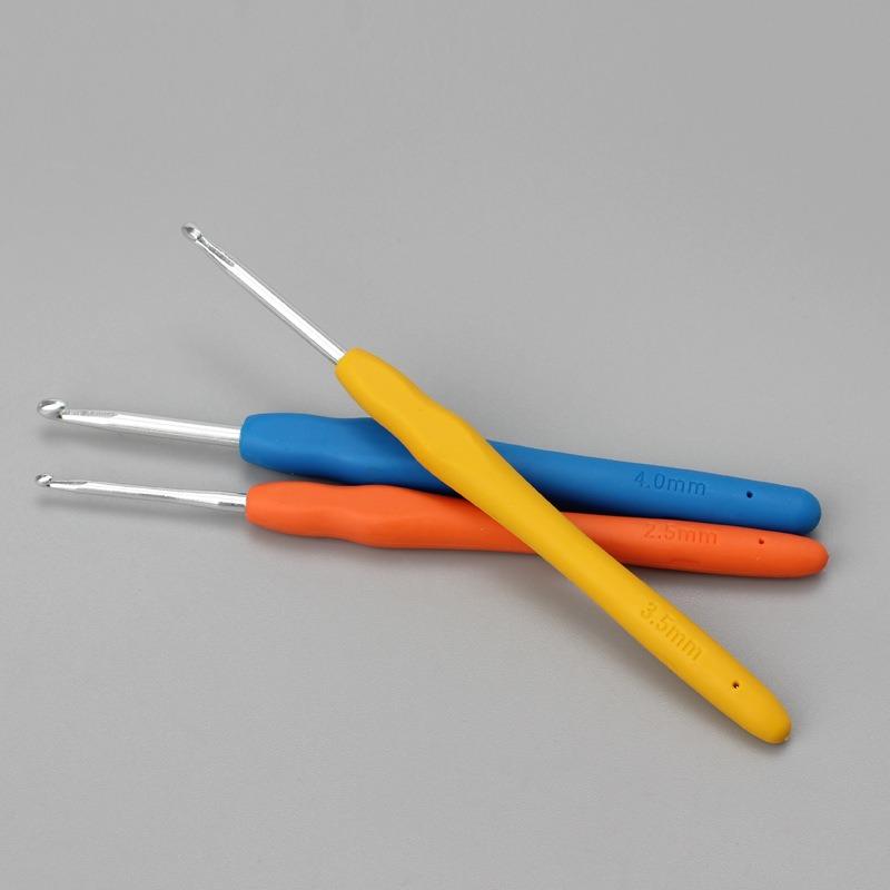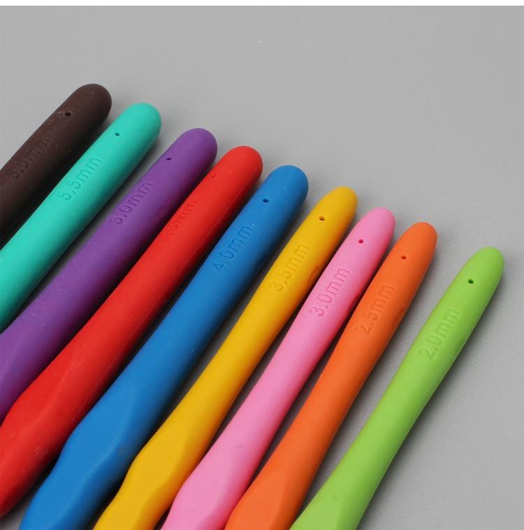 Набор крючков для ручного вязания цвета радуги, однотонный, с мягким хвостовиком
