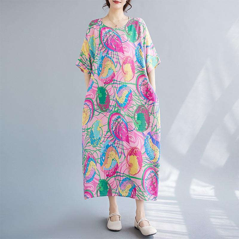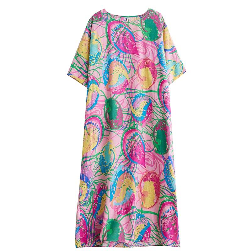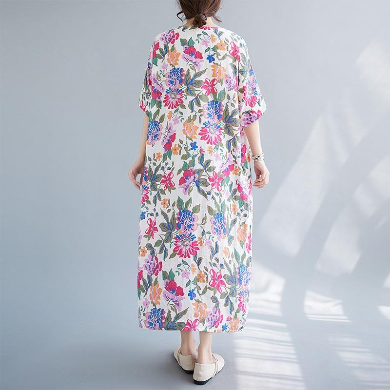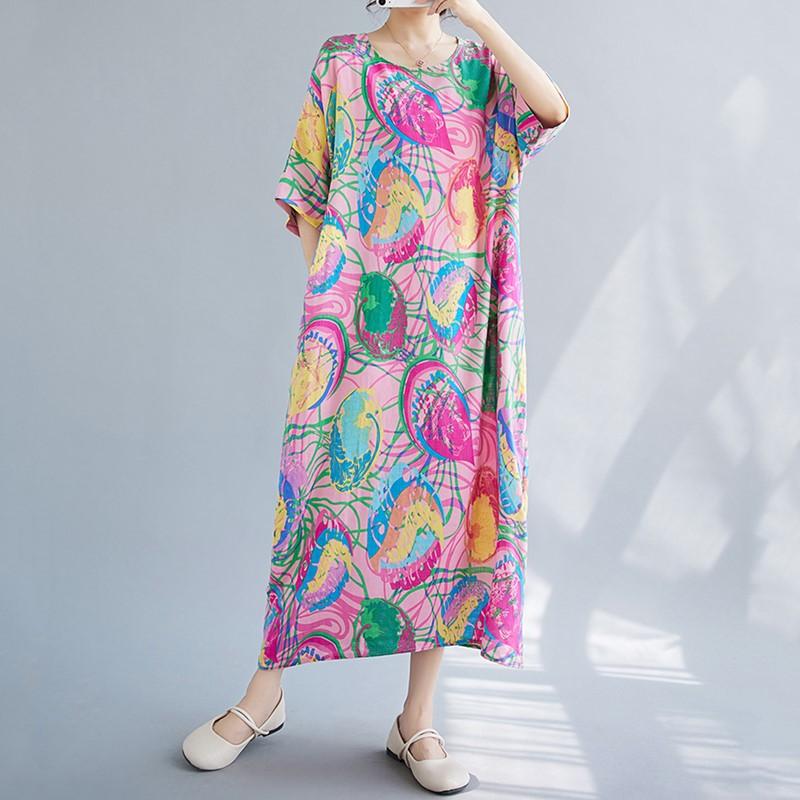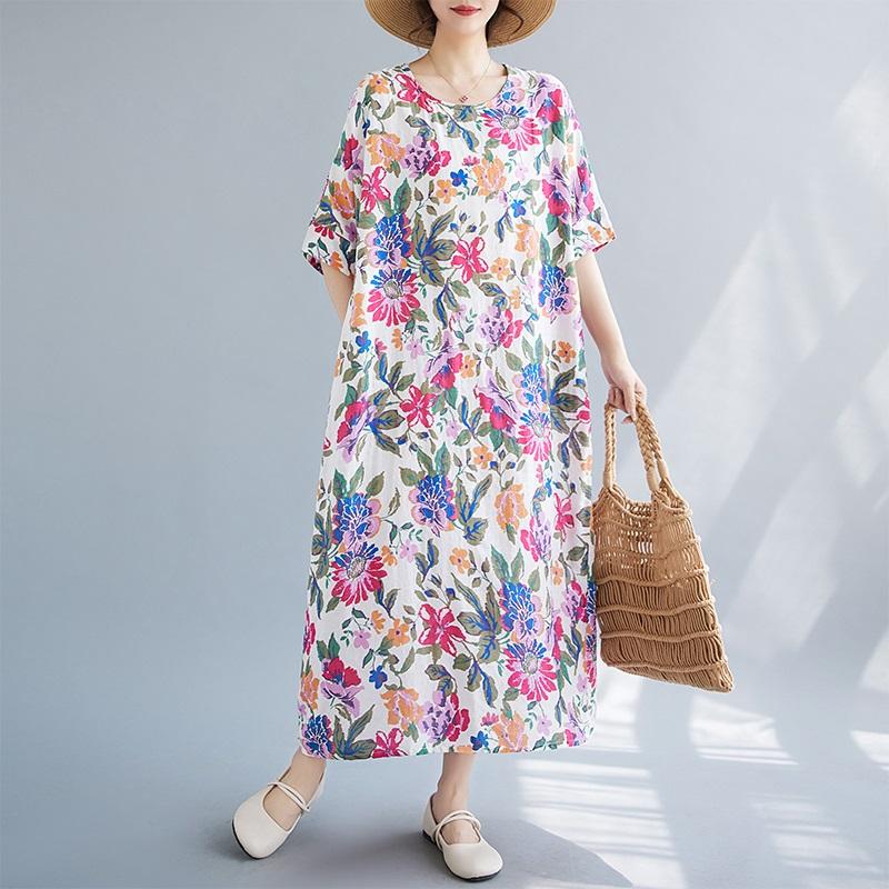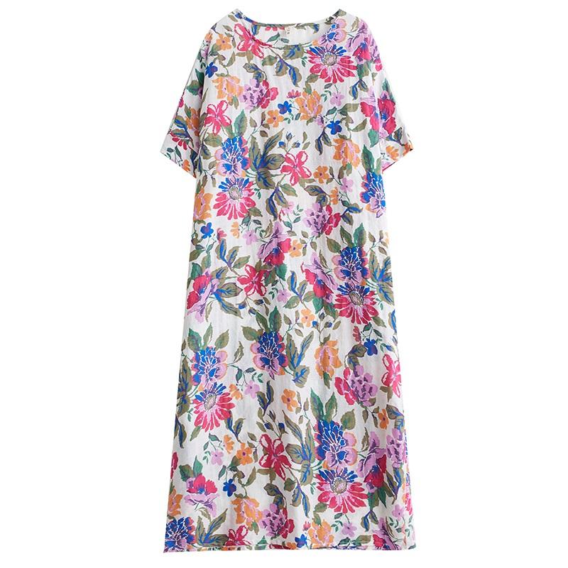 Новое хлопковое платье больших размеров с коротким рукавом и цветочным принтом для женщин, повседневное свободное длинное летнее платье