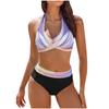 Женская мода комплект бикини с высокой талией из двух частей цветной блок с цветочным принтом бюст крест бикини купальник