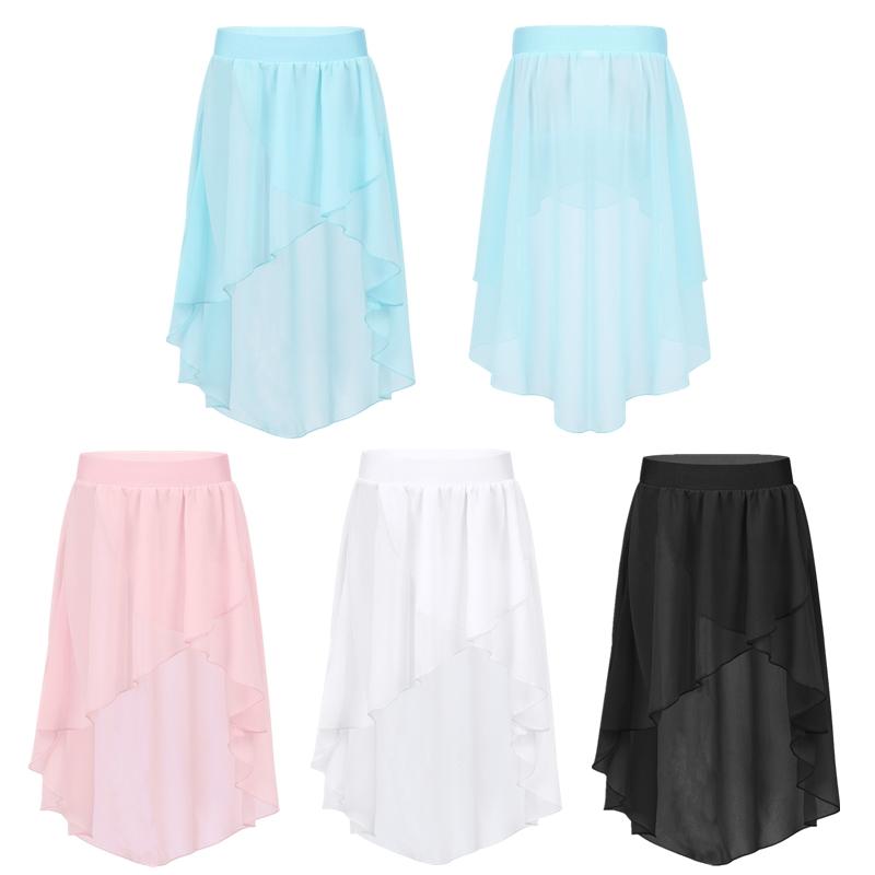 Детская шифоновая юбка с высоким и низким вырезом для девочек, бальная юбка для латинских танцев, сальсы, танго, шарф с запахом для скейтбординга, танцевальная одежда