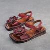 Johnature Сандалии на плоской подошве из натуральной кожи с цветочным принтом в стиле ретро, удобная женская обувь с квадратным носком на мягкой подошве в этническом стиле