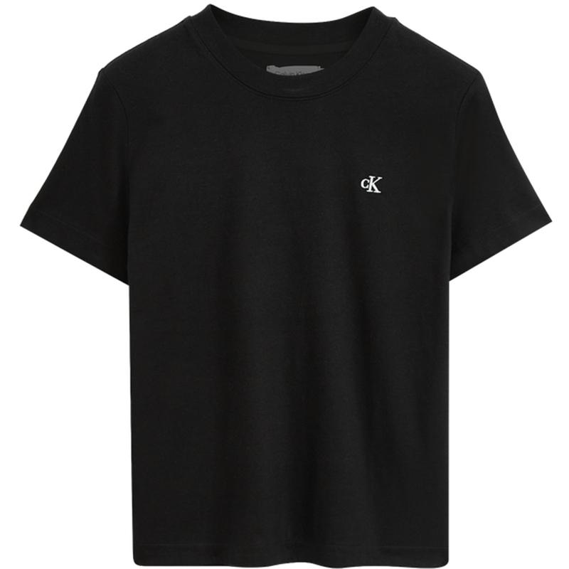 Calvin Klein Облегающая хлопковая футболка с вышитым логотипом, женские топы, черные 40WH105-BAE