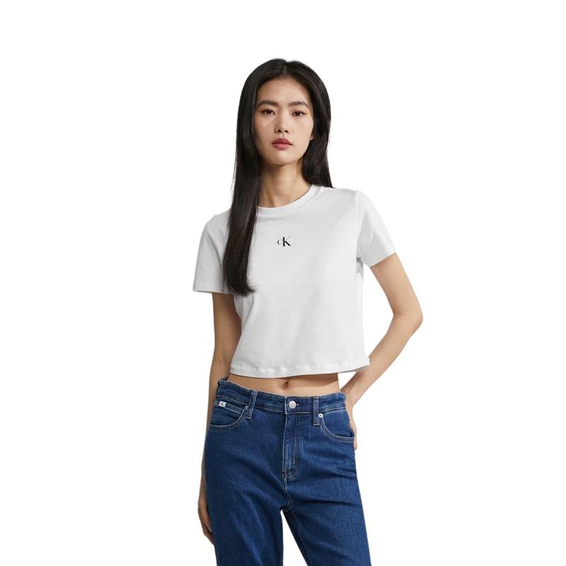 Calvin Klein Повседневная футболка с круглым вырезом и буквенным принтом, женские топы, лунный свет, белый J221837-YAF