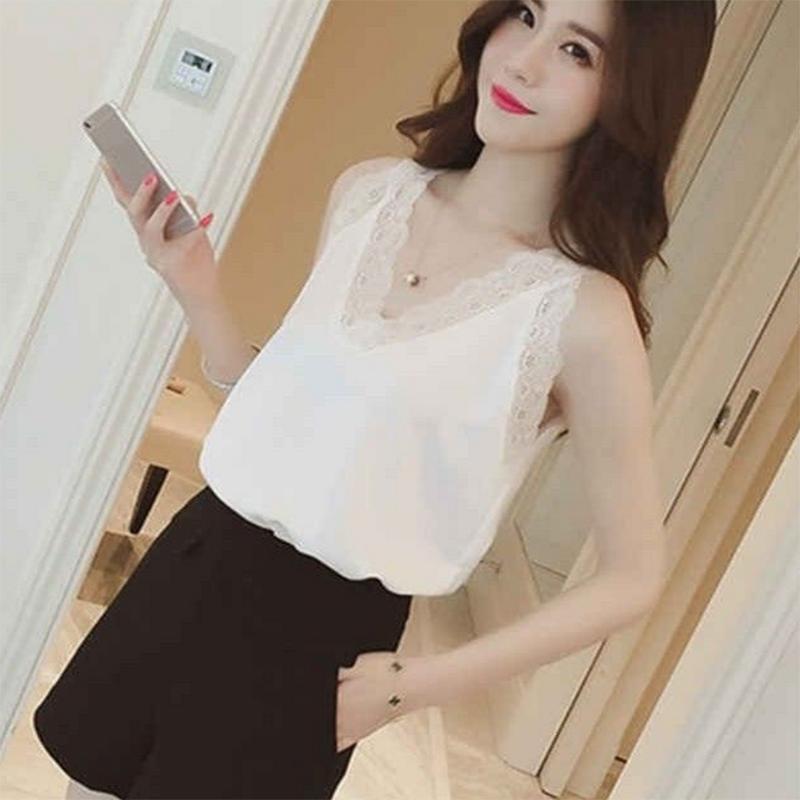 Свободная кружевная майка, женская корейская версия, рубашка больших размеров с толстым дном, универсальная короткая сексуальная верхняя летняя жилетка