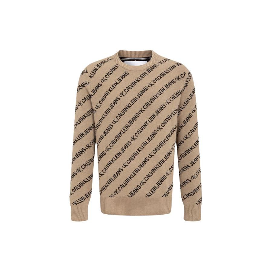 Calvin Klein Жаккардовый свитер с круглым вырезом со сплошными буквами, мужской свитер цвета хаки J319617-PBF