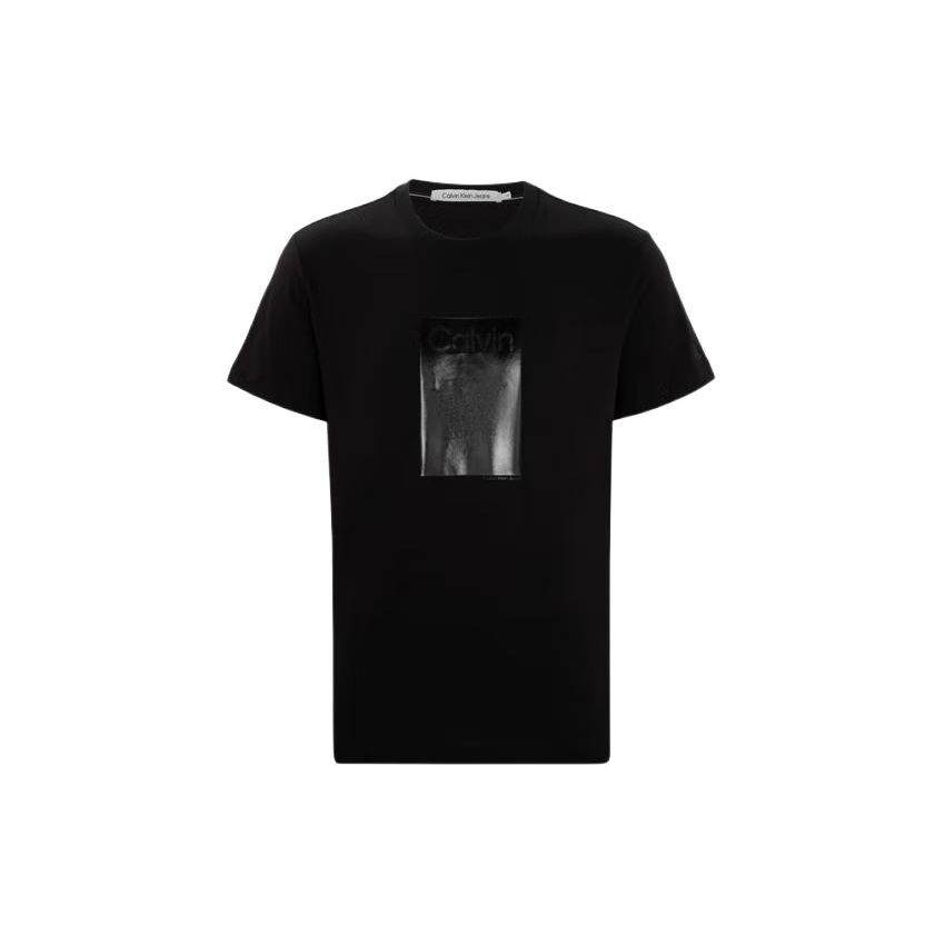 Calvin Klein Хлопковая повседневная футболка с круглым вырезом и квадратным принтом, мужские топы, черная J319955-BEH