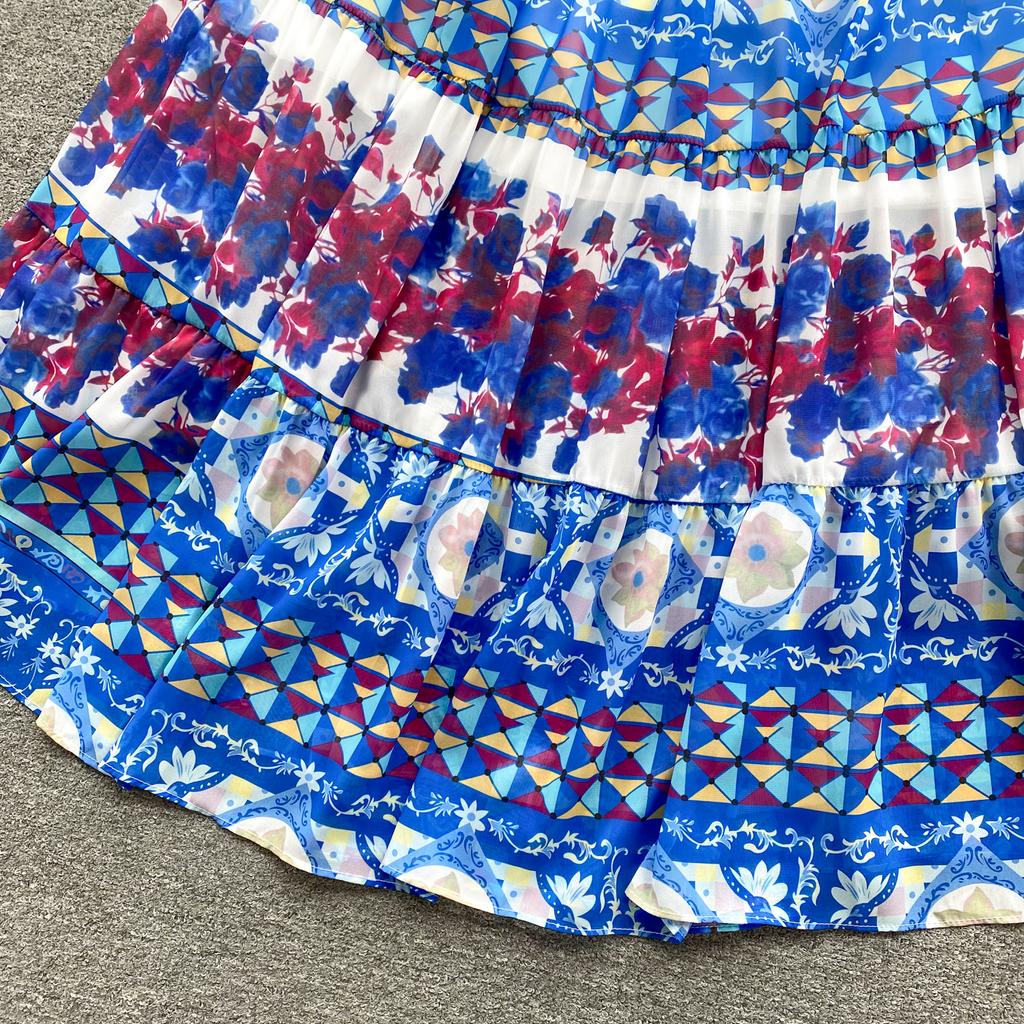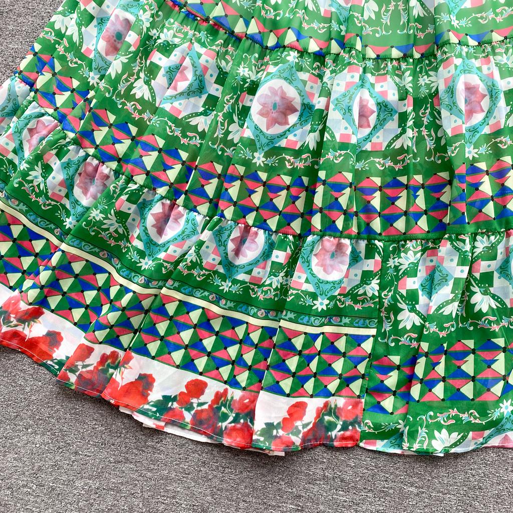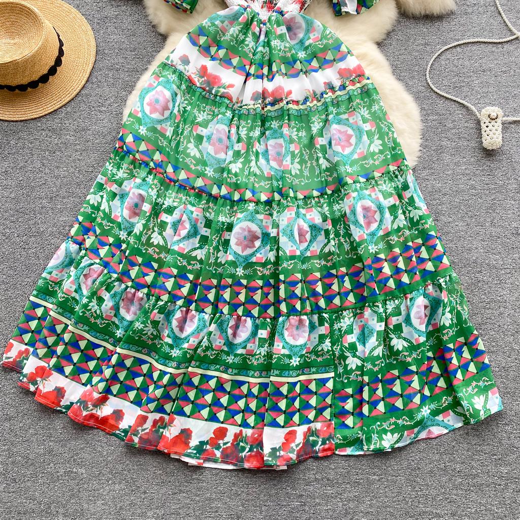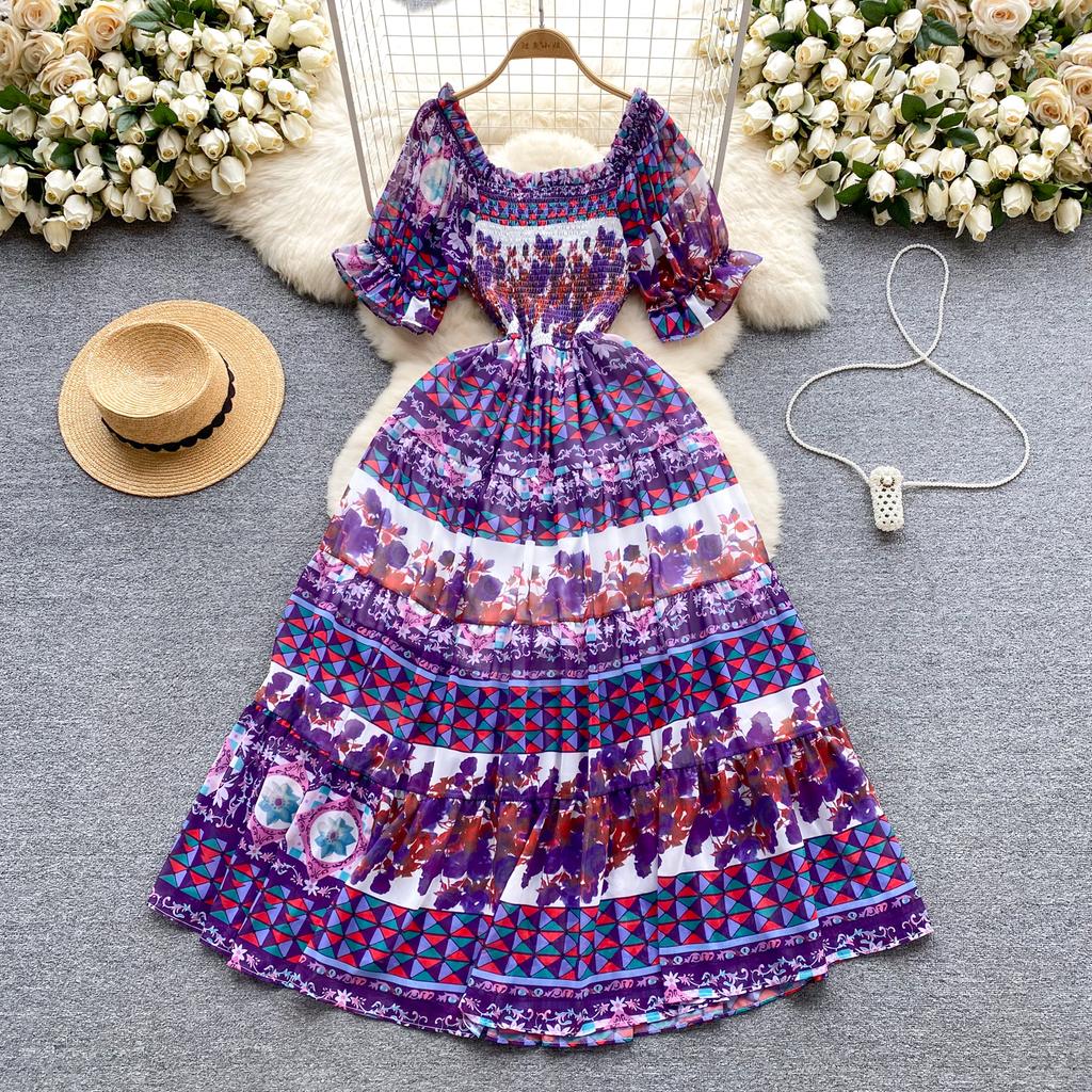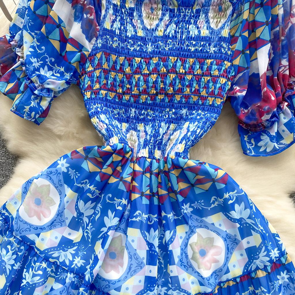 Платье для женщин с квадратным воротником, пышными рукавами и принтом, шифоновые платья трапециевидной формы со складками, эластичные платья Mujer, летняя Прямая поставка