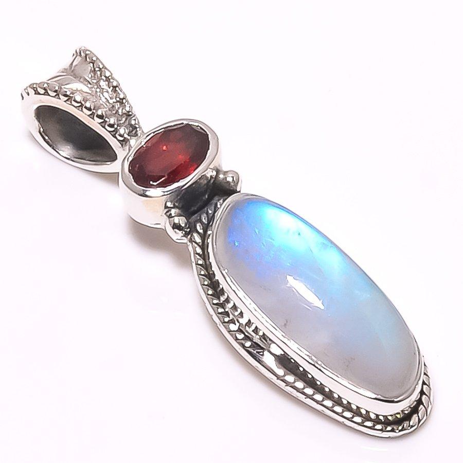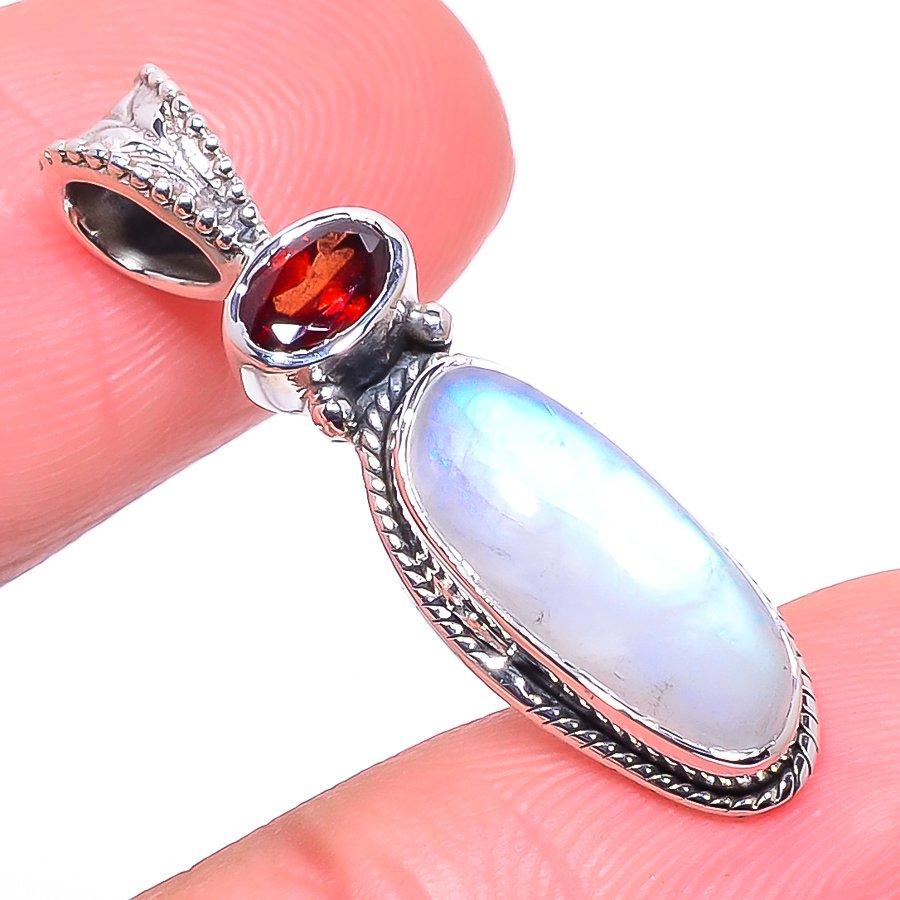 Подвеска из натурального радужного лунного камня, граната из стерлингового серебра 925 пробы 1,38" o0m28
