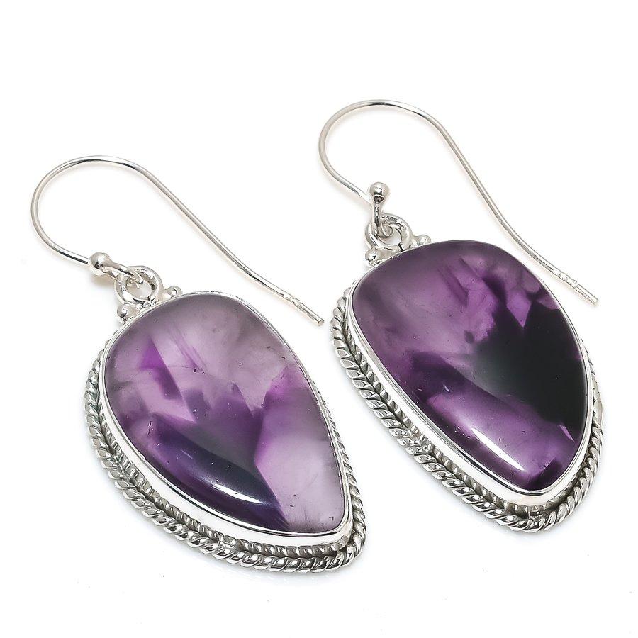 Серьги из стерлингового серебра 925 пробы с натуральным бразильским аметистом 1,75 дюйма g7y14