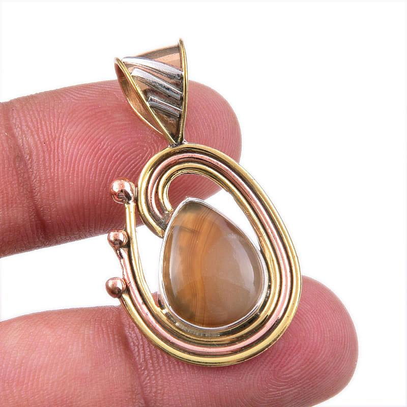 Подвеска из натурального ботсванского агата из стерлингового серебра 925 пробы, двухцветная, 1,50 дюйма, E9M54