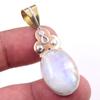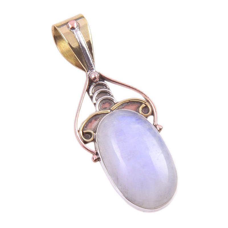 Драгоценный камень из натурального радужного лунного камня 925 пробы, одноцветное серебро, двухцветный кулон 1,50 дюйма T9p05