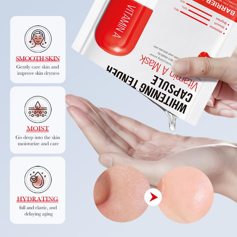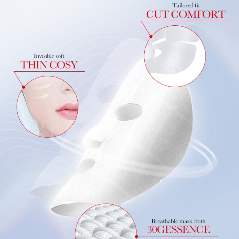 Ткань маски легкая и дышащая, мягкая текстура, увлажняющая и нежная, сохраняет влагу кожи, повышает влажность кожи, способствует питанию кожи, уменьшает сухость и делает кожу гладкой и увлажненной.