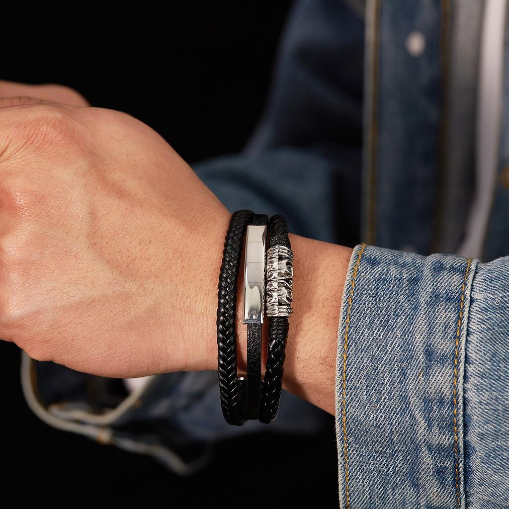 Модный ретро-браслет из нержавеющей стали, многослойный, плетеный, кожаный браслет