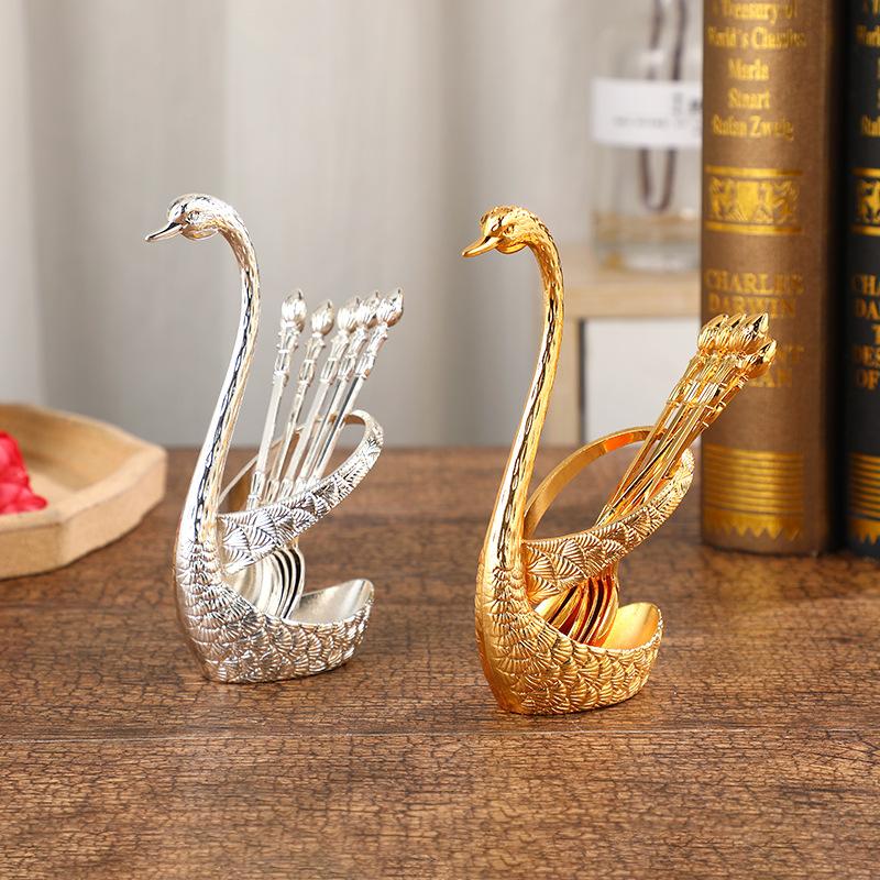 Лебедь фруктовая вилка для хранения кухонных металлических столовых приборов серебряный лебедь набор ложек