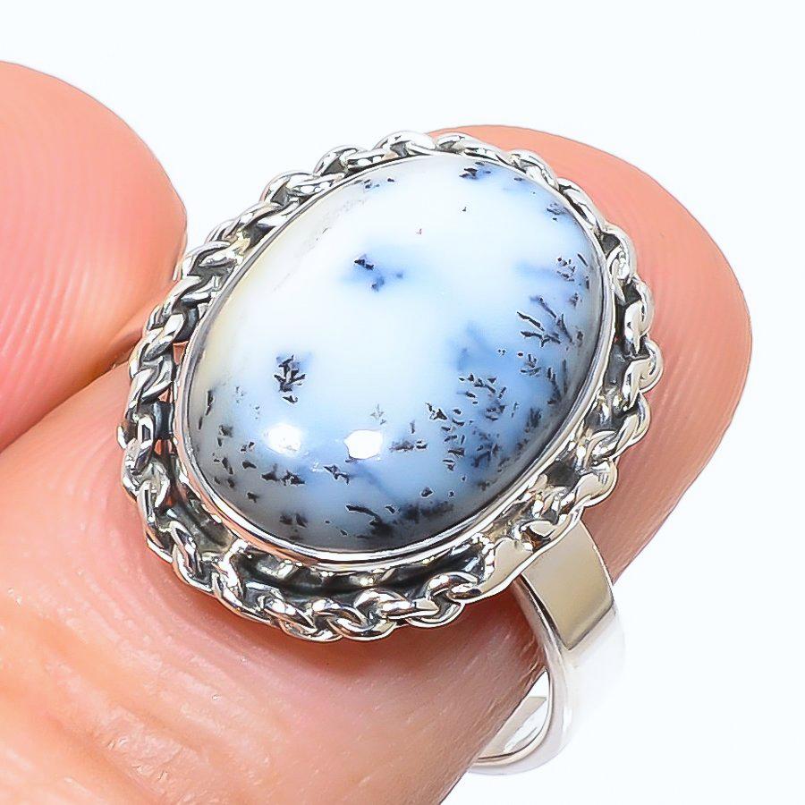 Кольцо из стерлингового серебра 925 пробы с натуральным опалом и дендритом S.7.5 j0c14 — купить товар онлайн с бесплатной доставкой по всему миру!