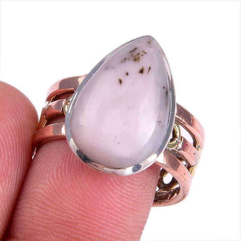 Ювелирное кольцо из стерлингового серебра 925 пробы с натуральным розовым опалом, двухцветное ювелирное кольцо S.9.5 a2S77