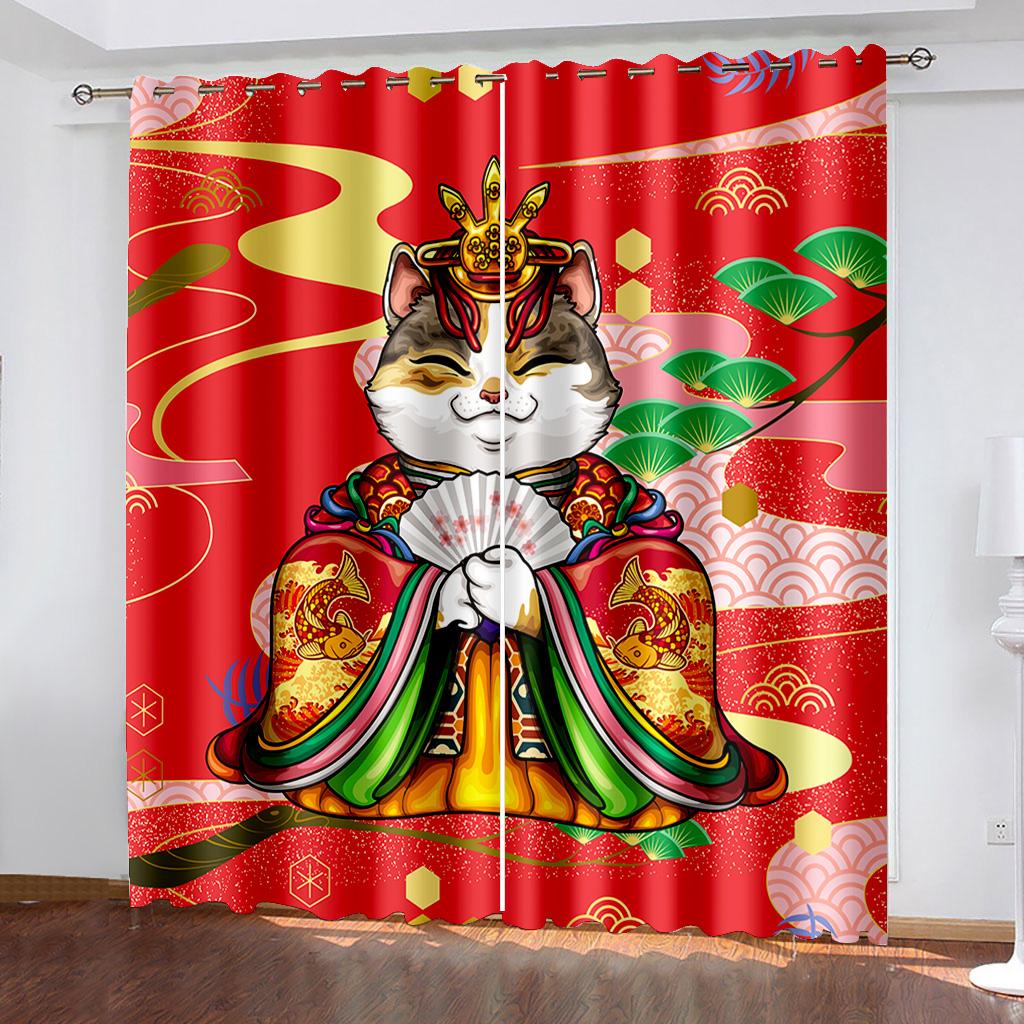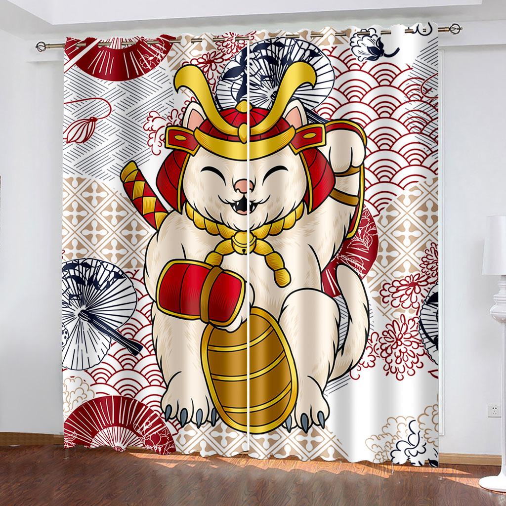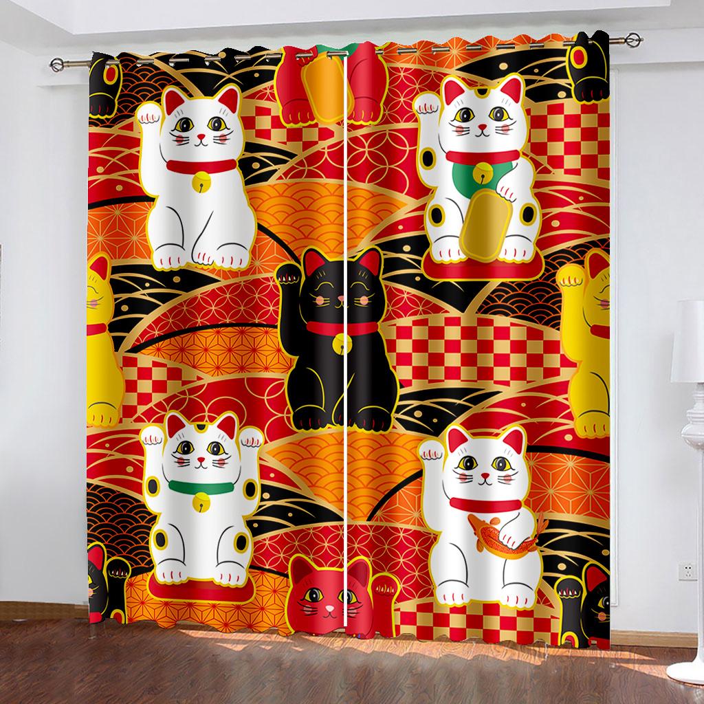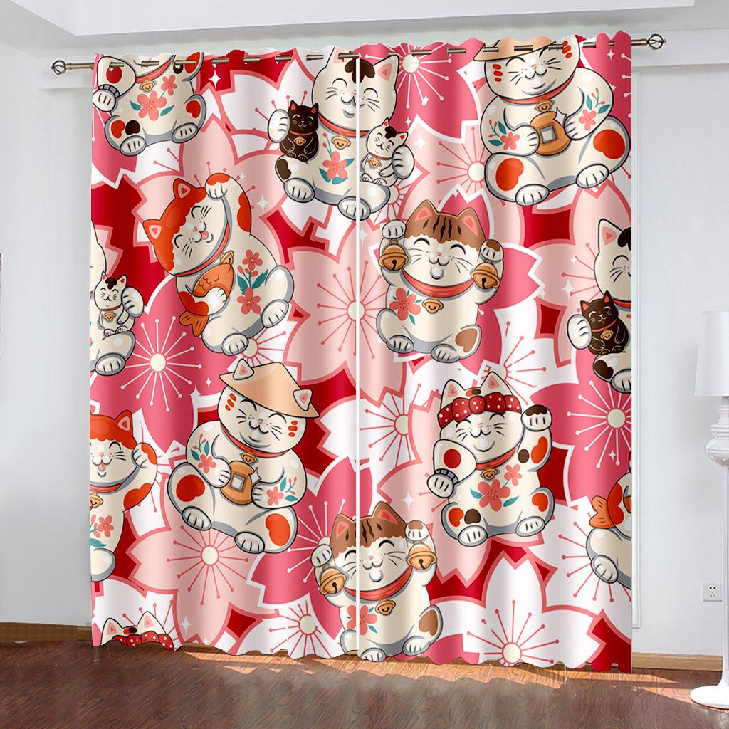 3D Animal Cat Series Shadowing Curtains 2 Pieces Гостиная Спальня Домашнее украшение Крючок Перфорация