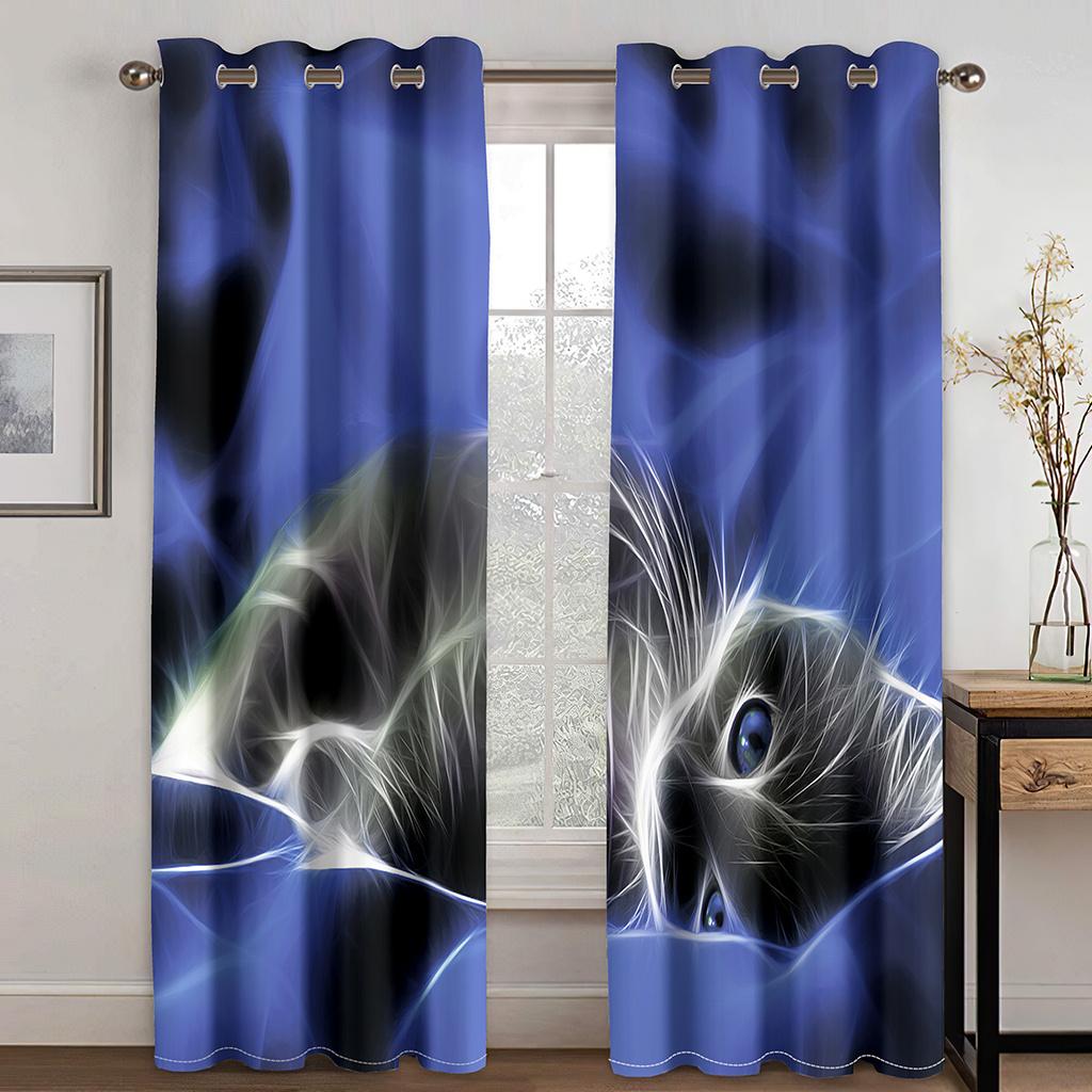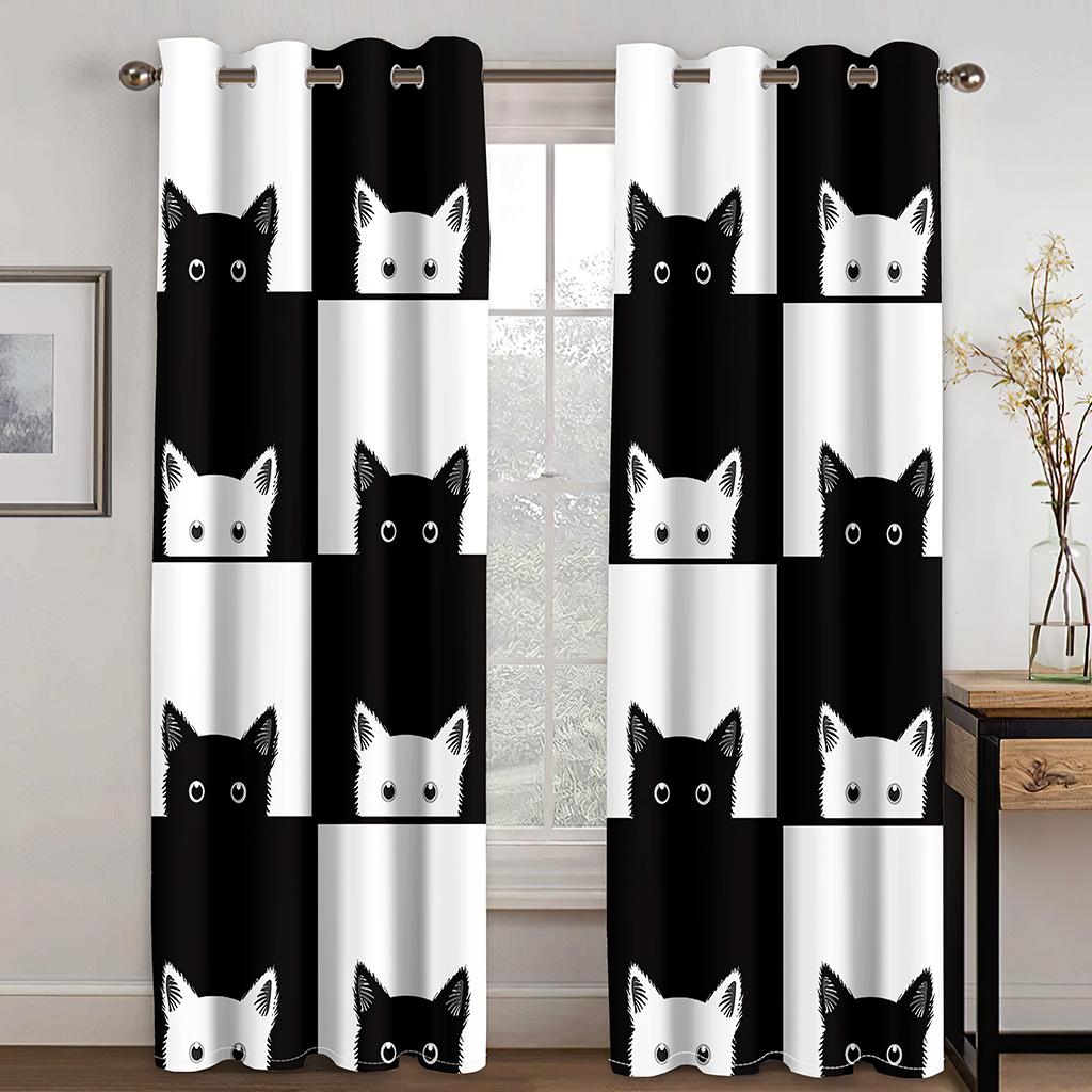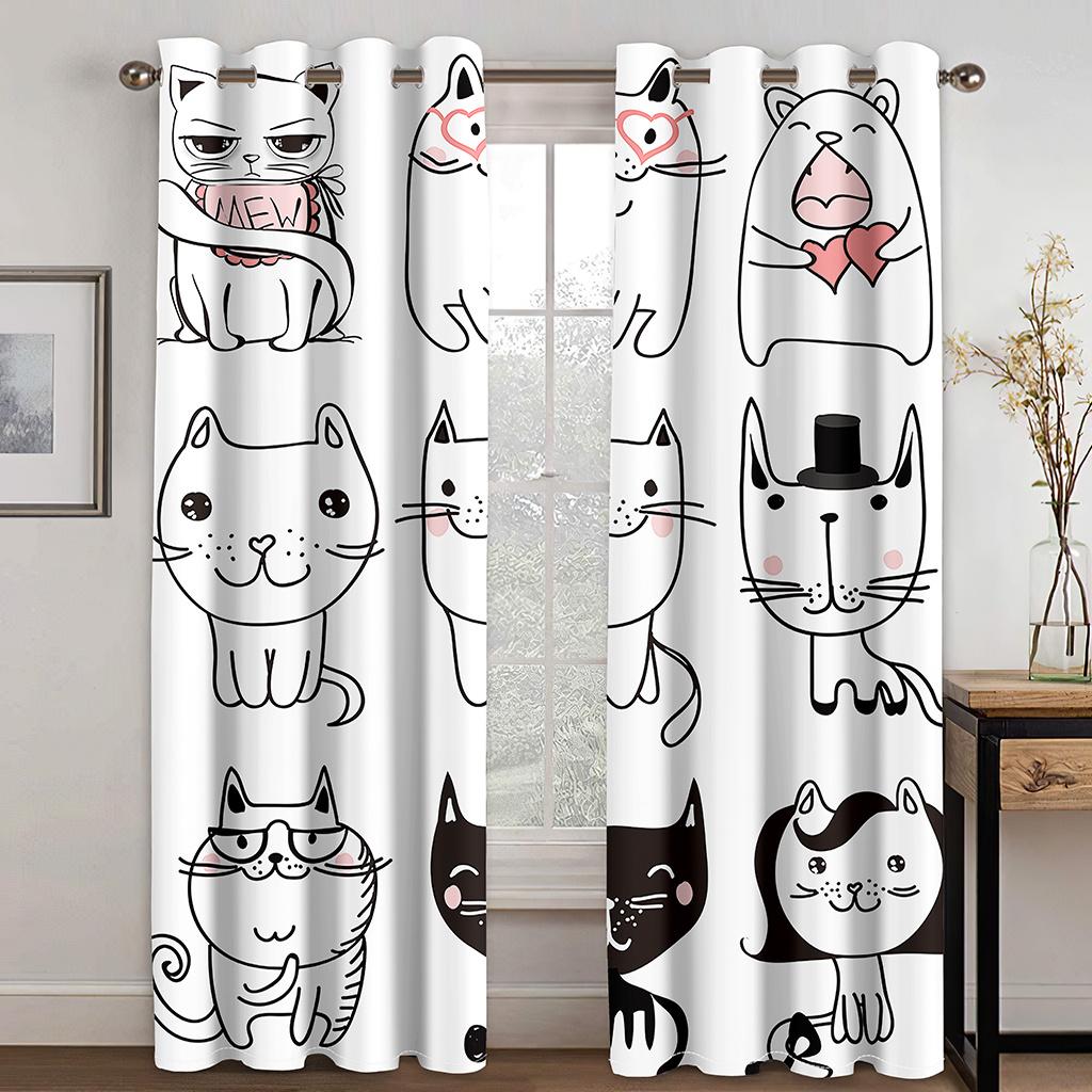 Черно-белые современные шторы с рисунком кота для гостиной, спальни, дома, кухни, оконные шторы