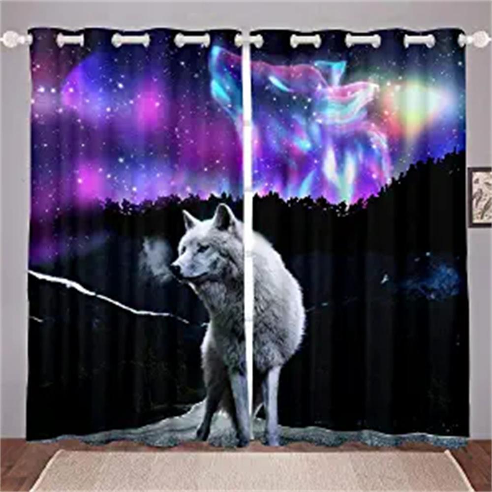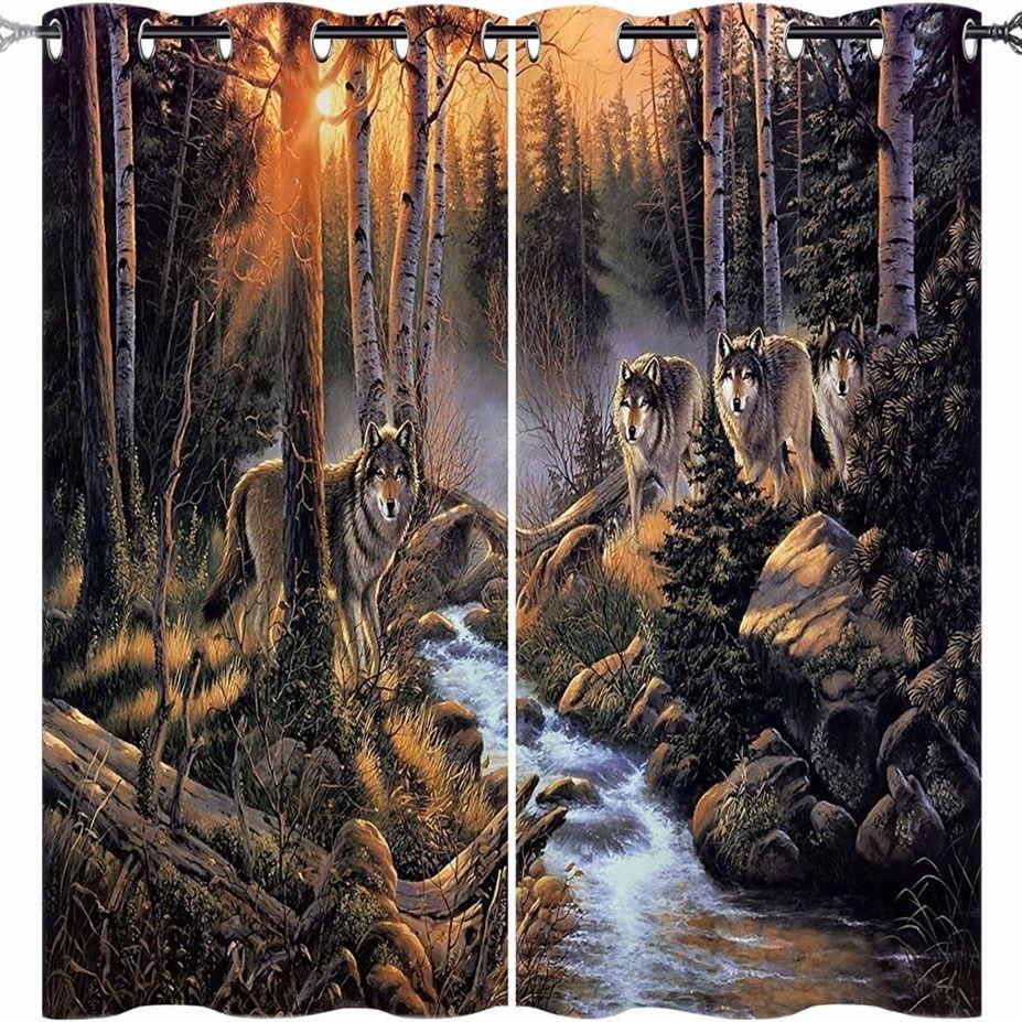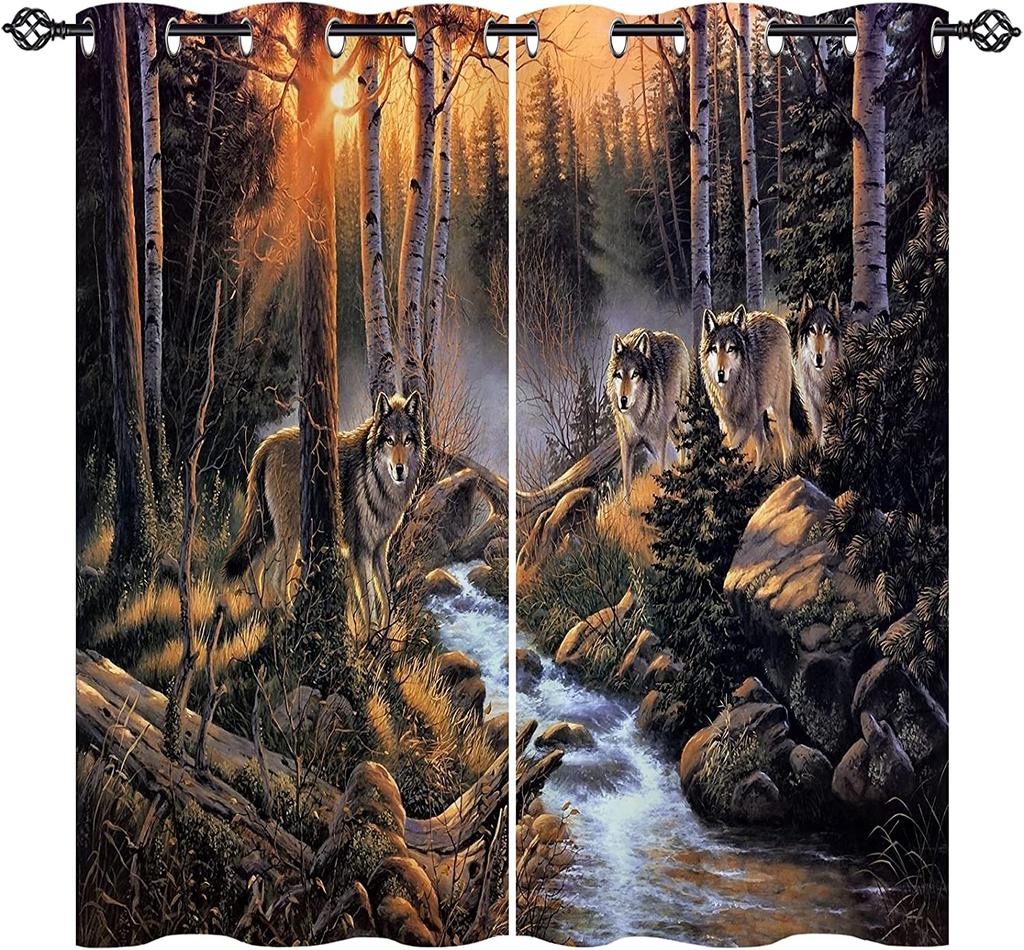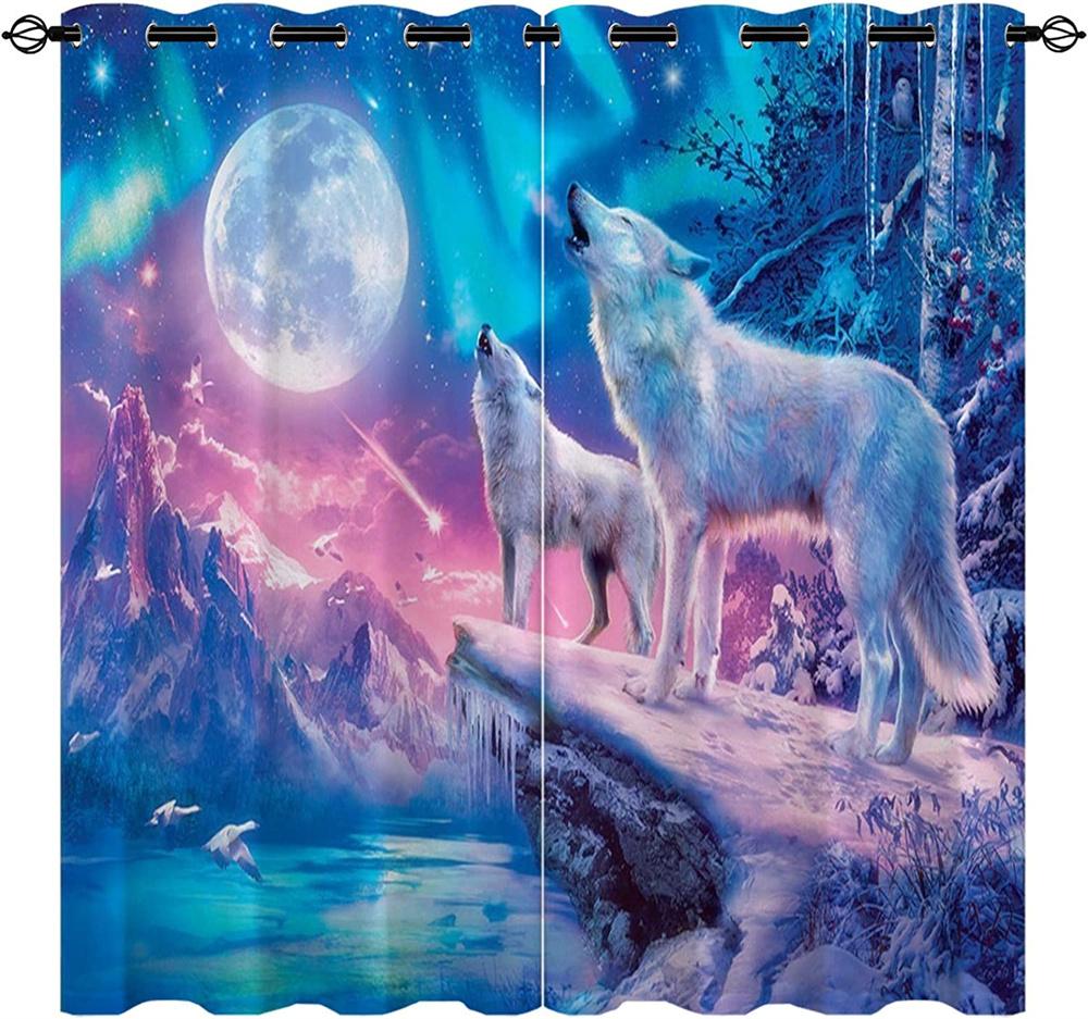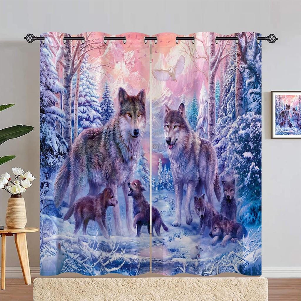 3D напечатанный на заказ рисунок в виде животного, снежного зимнего леса и семьи волков, затенение, полиэстер, 2 панели, занавеска для дома для детской спальни, гостиной3
