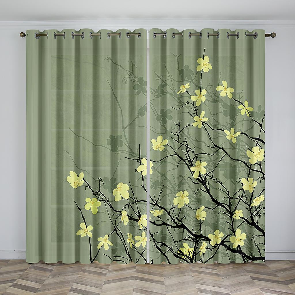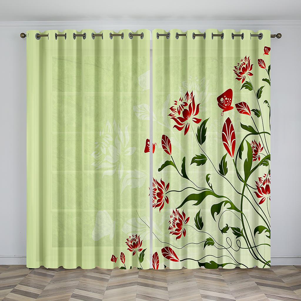 Занавески с зелеными листьями, цветочные ботанические печатные панели, полевые цветы, тюльпаны, растения, плющ, травы, деревенские шторы для гостиной, спальни