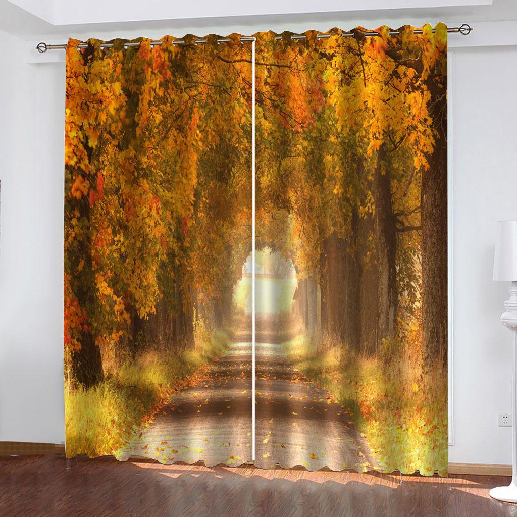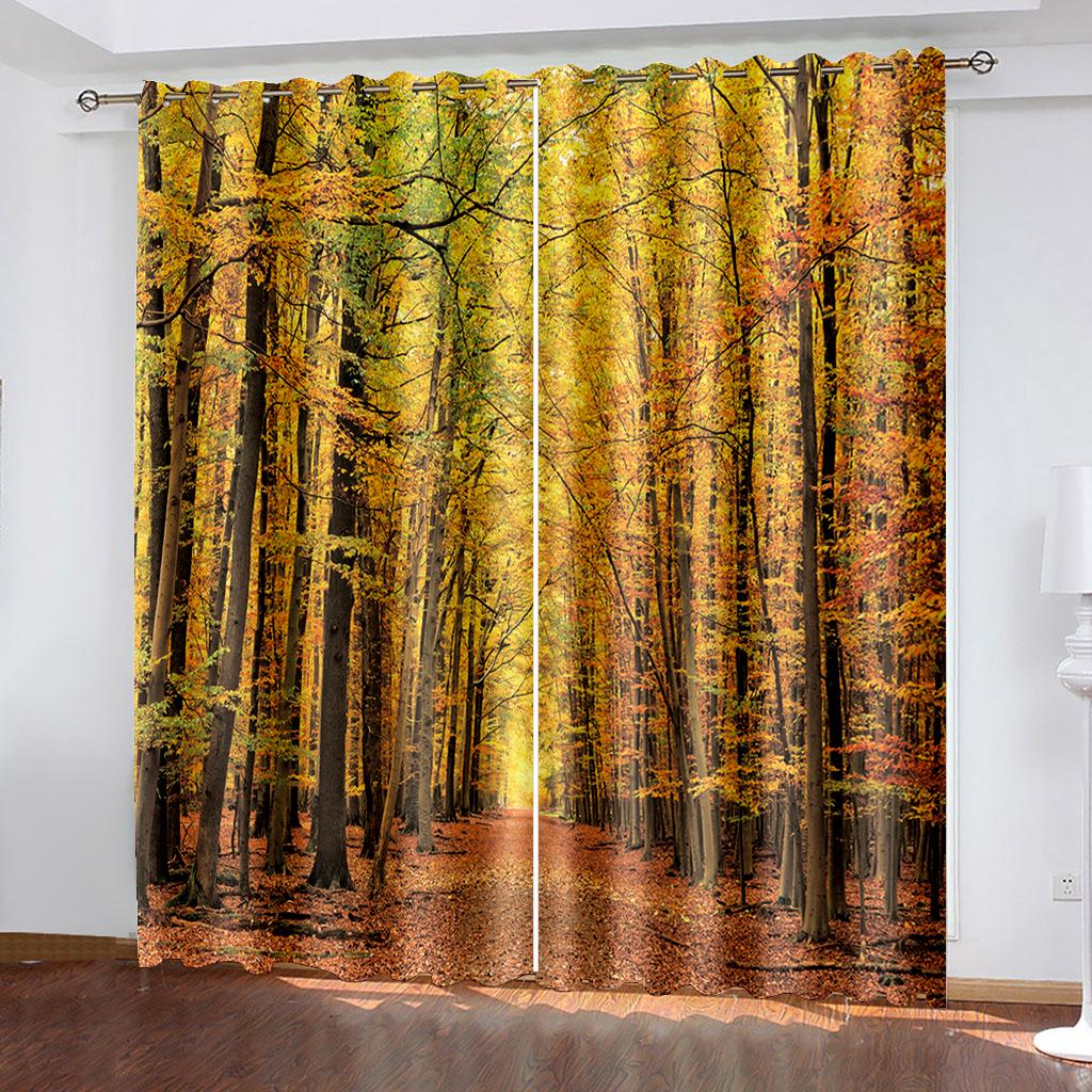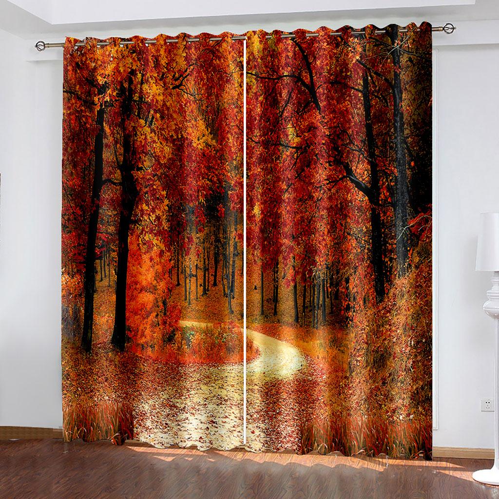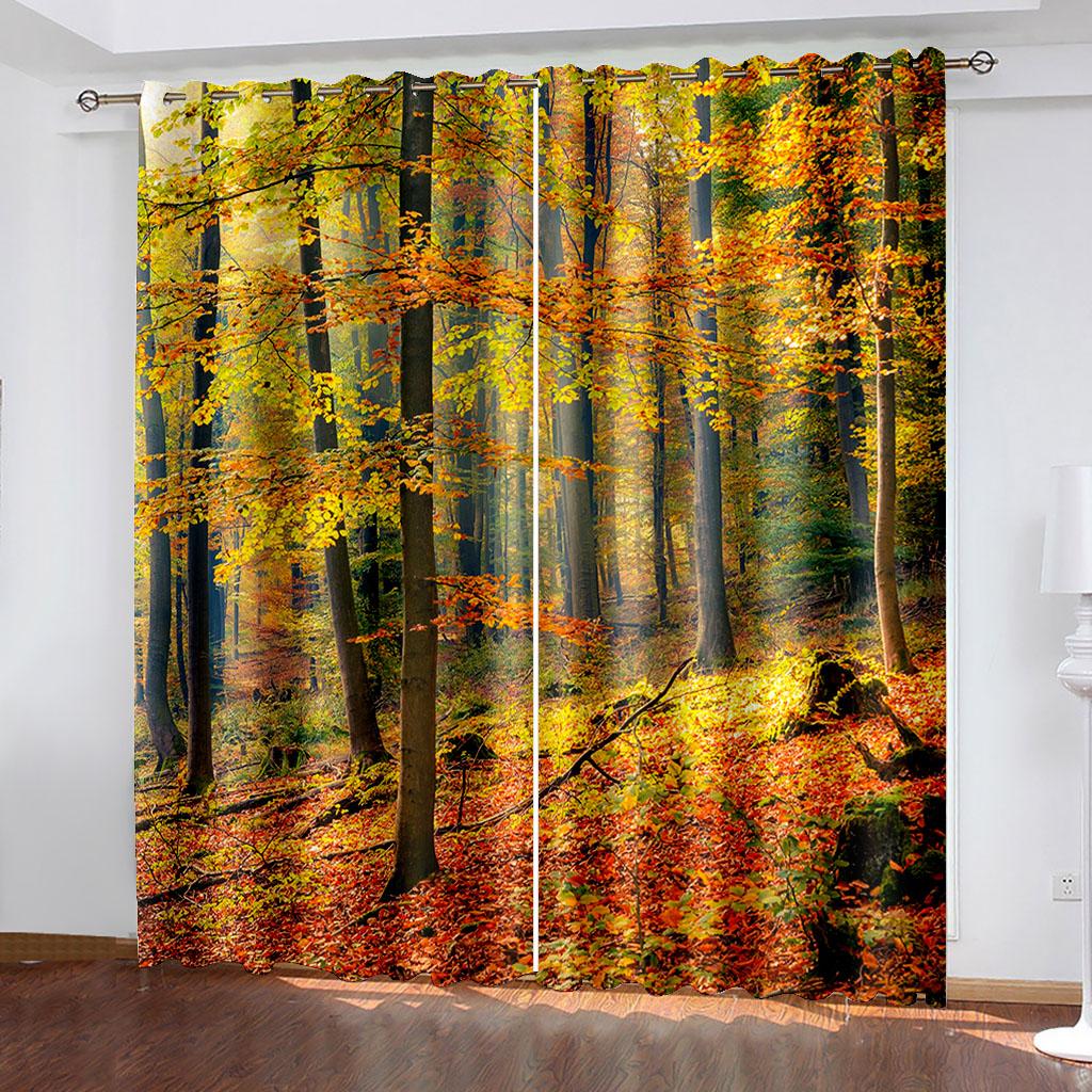 Осенний лесной пейзаж, серия Deluxe, украшение для гостиной, спальни, солнцезащитная занавеска, 2 шт., крючок-пробойник