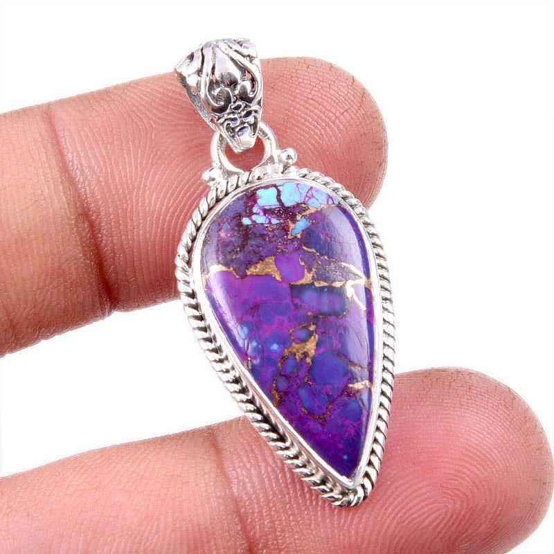 Natural Purple Copper Turquoise 925 Solid Sterling Silver Gift Pendant 1.5" K5v53