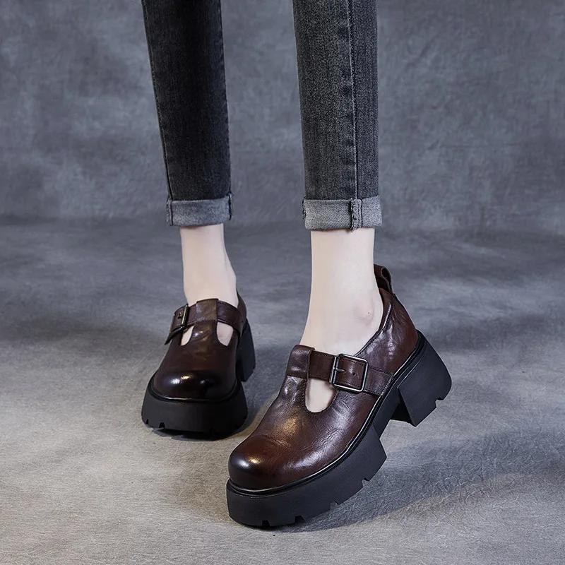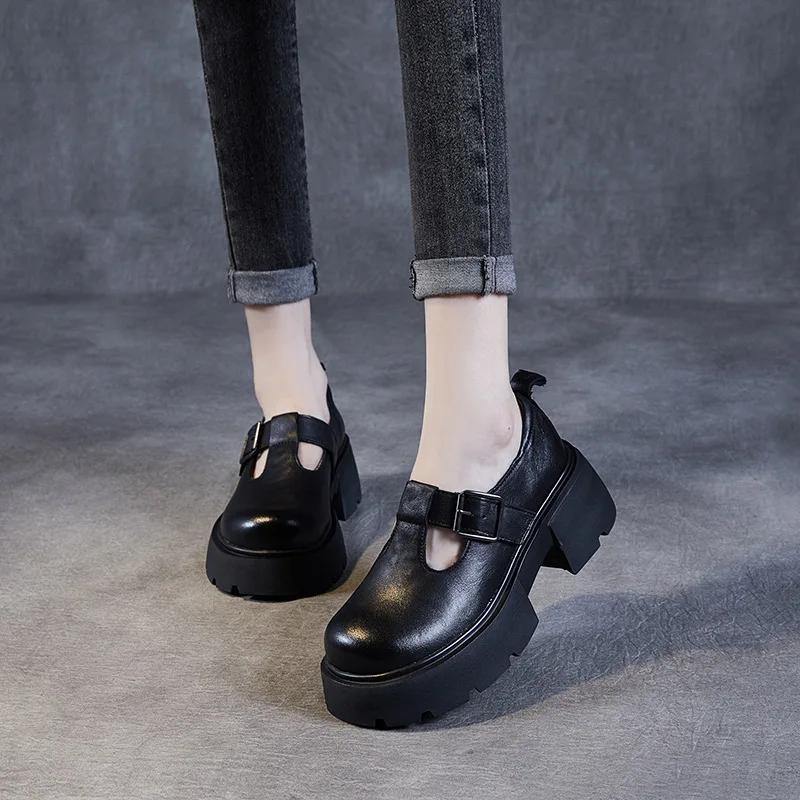 Fujin/весенняя женская обувь на высоком каблуке 6 см на платформе, осенняя обувь на танкетке, натуральная кожа в этническом стиле, летняя мода на круглой подошве с крючком Мэри Джейн