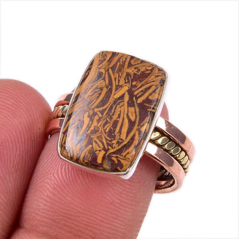 Двухцветное кольцо из чистого серебра 925 пробы с натуральным драгоценным камнем Марьям Джаспер S.9 z8Y83 — купить товар онлайн с бесплатной доставкой по всему миру!
