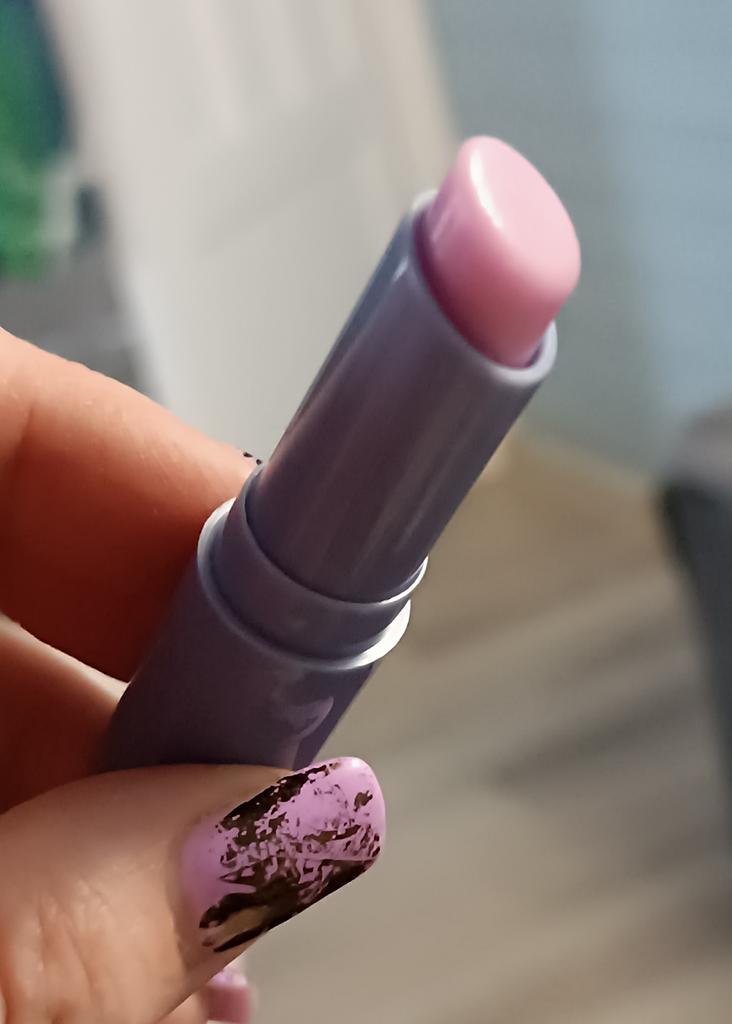 Увлажняющий бальзам для губ. Обладает едва уловимым фруктовым ароматом. Несмотря на розово-сиреневый цвет губы не окрашивает, но смягчает очень хорошо.
