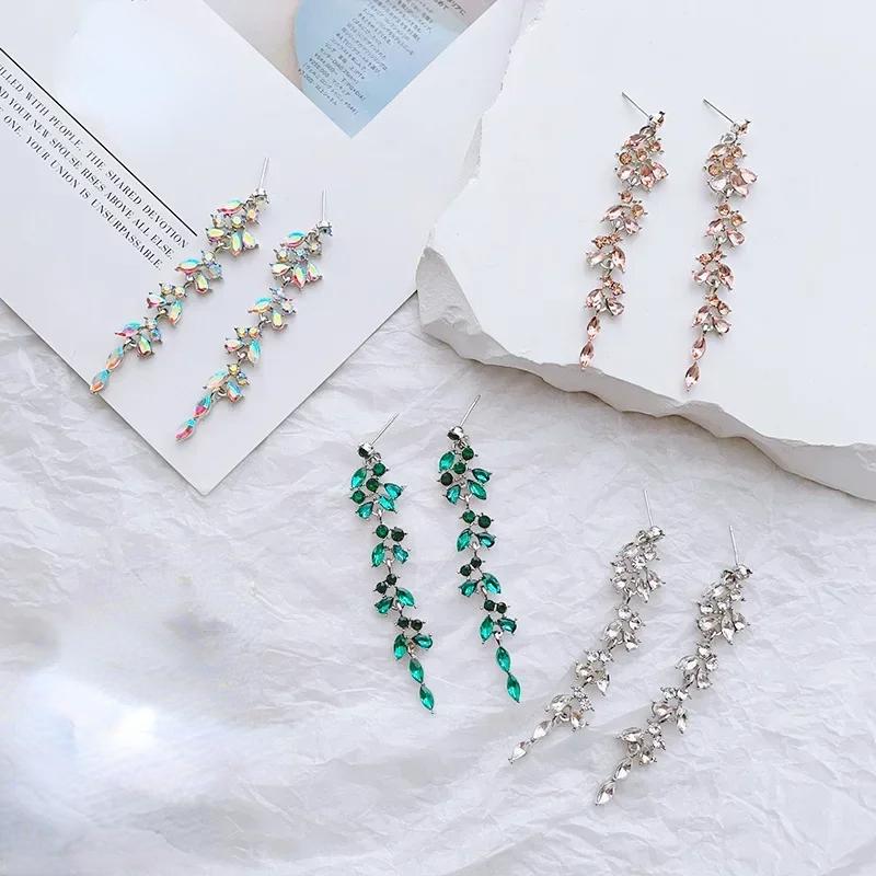 Модные длинные висячие серьги-цепочки с кисточками, подвески, серьги-капли, женские вечерние серьги со стразами и геометрическим листом, висячие серьги, ювелирные изделия