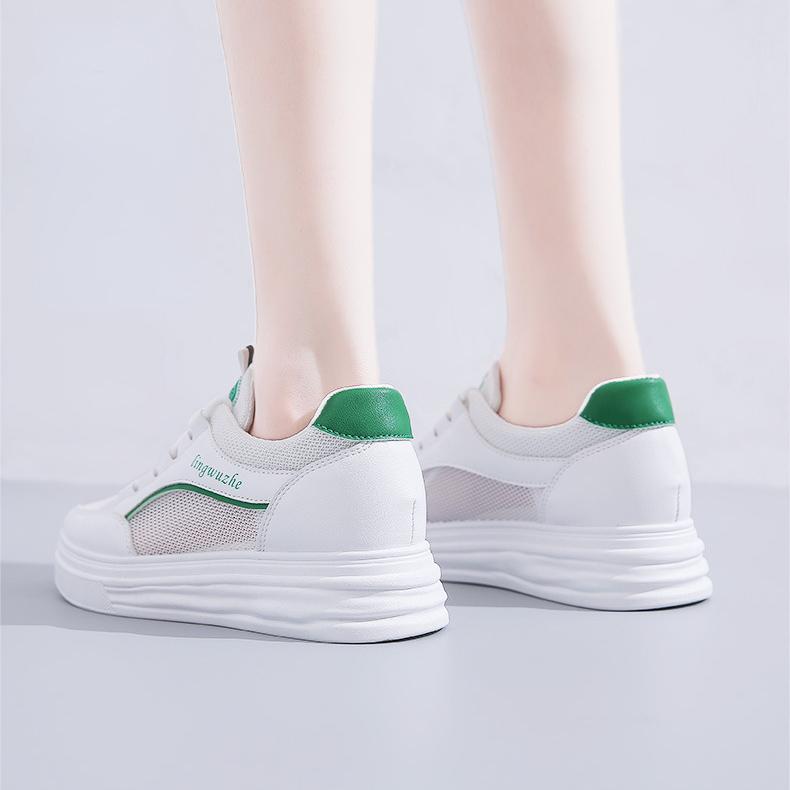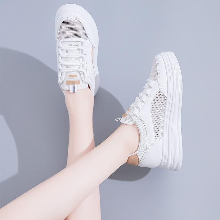 Спортивная маленькая белая обувь, женская обувь, летняя толстая подошва, новая универсальная популярная обувь с сетчатым верхом на внутренней поверхности