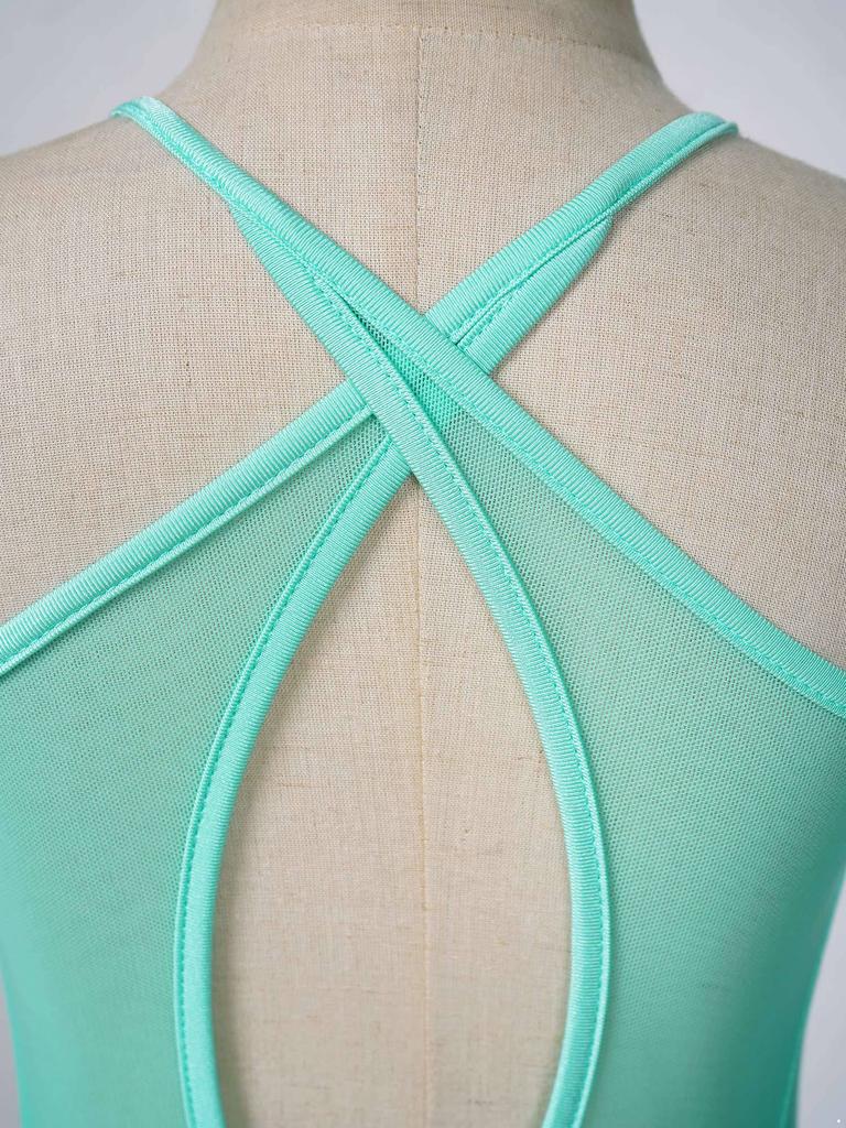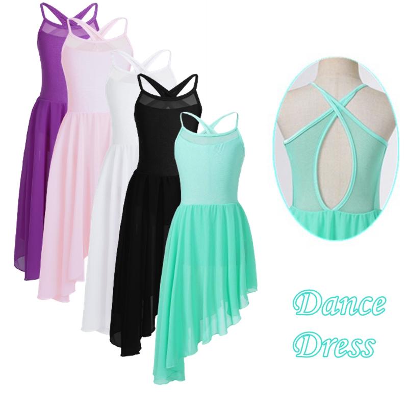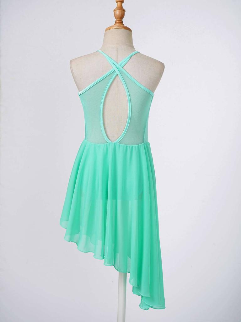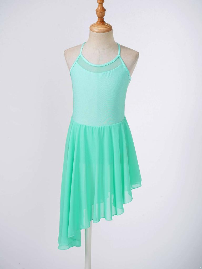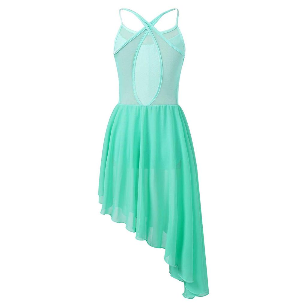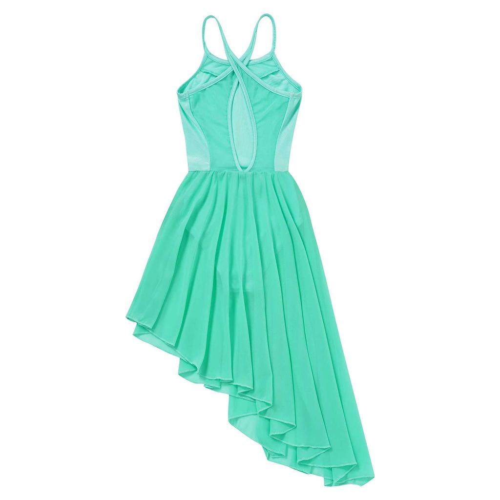 Лирическое танцевальное платье для девочек, сетчатое платье на бретельках с вырезом сзади, неровный подол, балетное танцевальное гимнастическое трико, платье