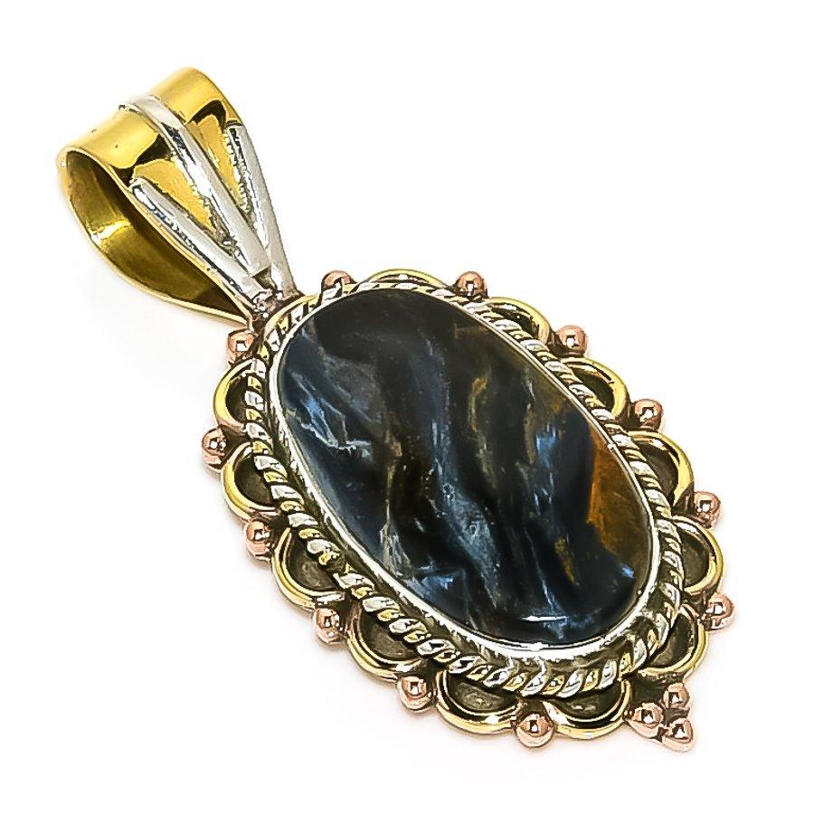 Натуральный камень Питерсит Двухцветный Кулон из стерлингового серебра 925 пробы 1,50" E0G12