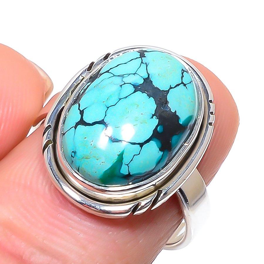 Кольцо из чистого серебра 925 пробы с натуральным тибетским бирюзовым камнем S.8 E5G35