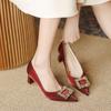Свадебные туфли на толстом каблуке, с острым носком, не утомляющие, атласные туфли для подружек невесты на высоком каблуке, нишевые универсальные туфли с квадратной пряжкой для женщин